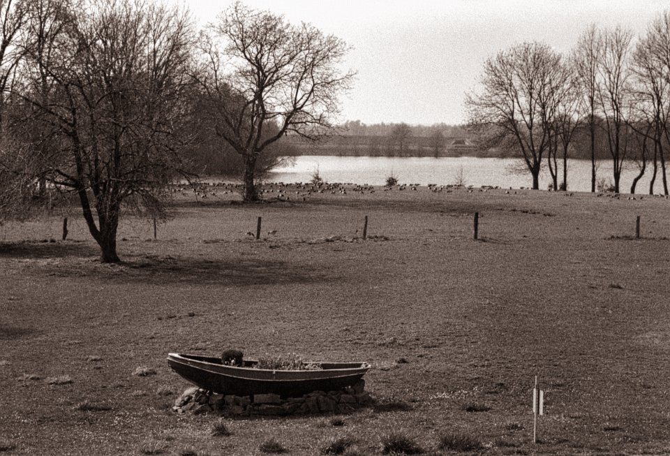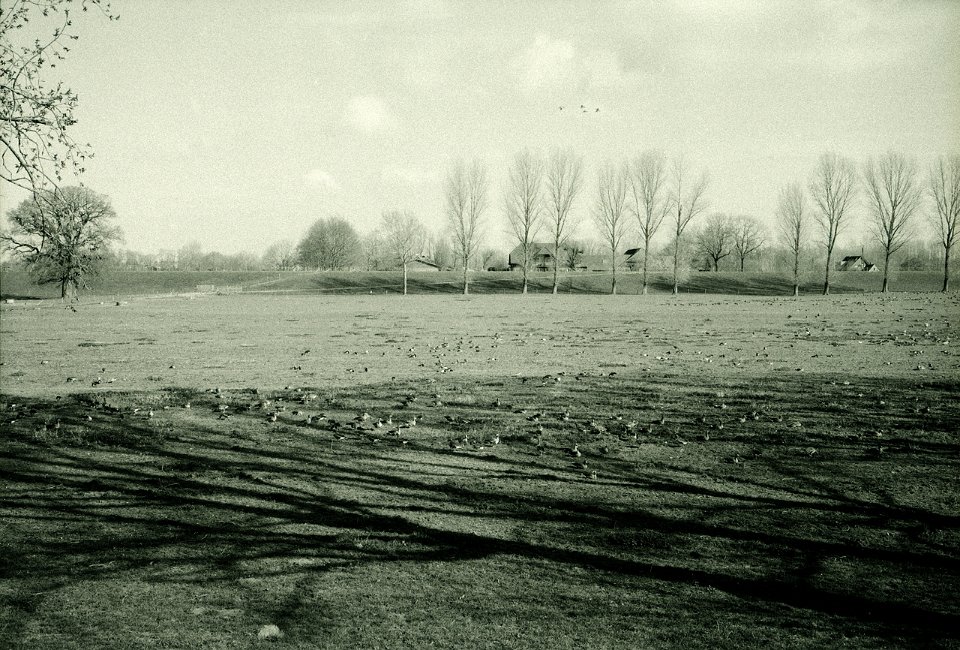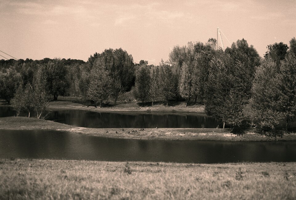 44 Gänse, Sträucher und Hochwasser Pentax 645N, SMC FA 2.8/45, Gelbfilter, Bergger Pancro 400@250 |