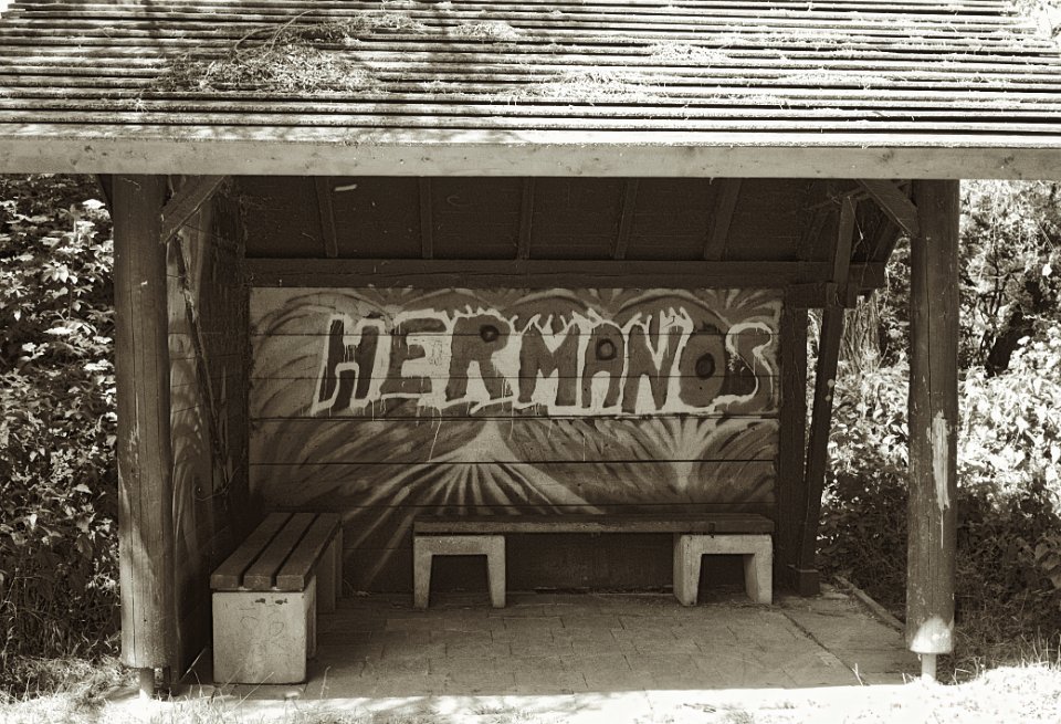 117 Unterstand am Wegrand Pentax Super A, SMC Fa 1.9/43 Limited, Ilford Pan 100, Gelbfilter - 03.06.2023 - |