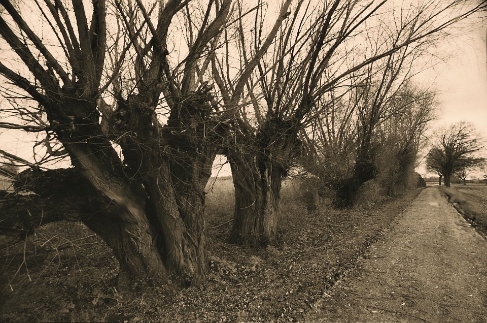 23 Beschnittene Kopfweiden Pentax SuperA, MC Soligor C/D Wide-Auto 2.8/20, Gelbfilter, Bergger Pancro400 @320 |