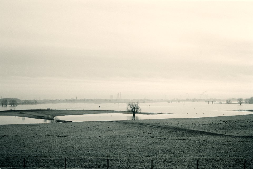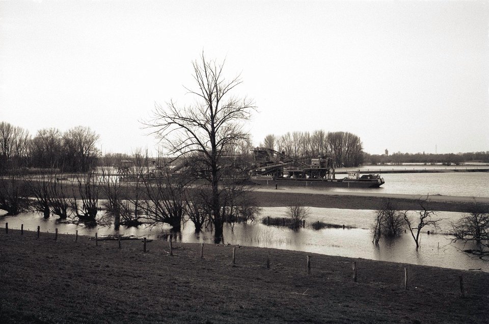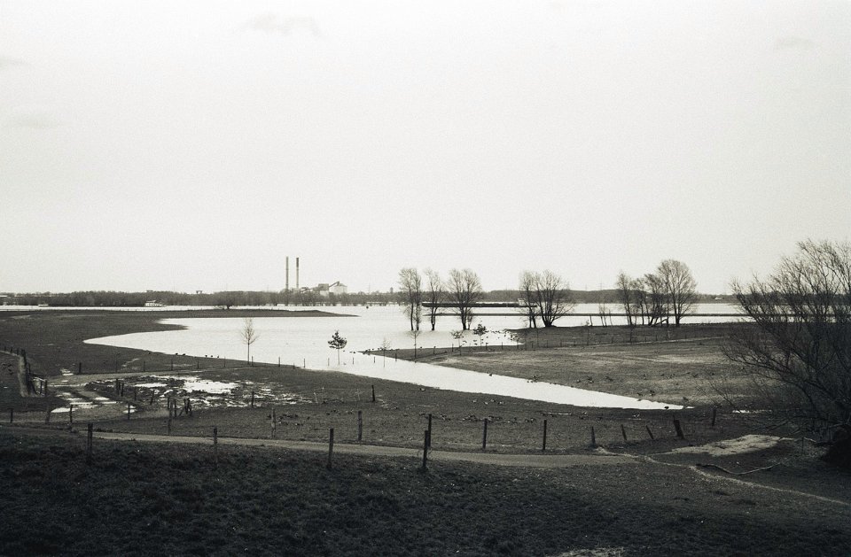43 Rheinhochwasser Pentax 645N, SMC FA 2.8/45, Gelbfilter, Bergger Pancro 400@250 |