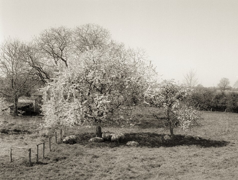 152 Schafe unter Blüten Fuji GS 645 S prof.WIDE 60, KODAK 400TX@200 - 14.04.2025 - |