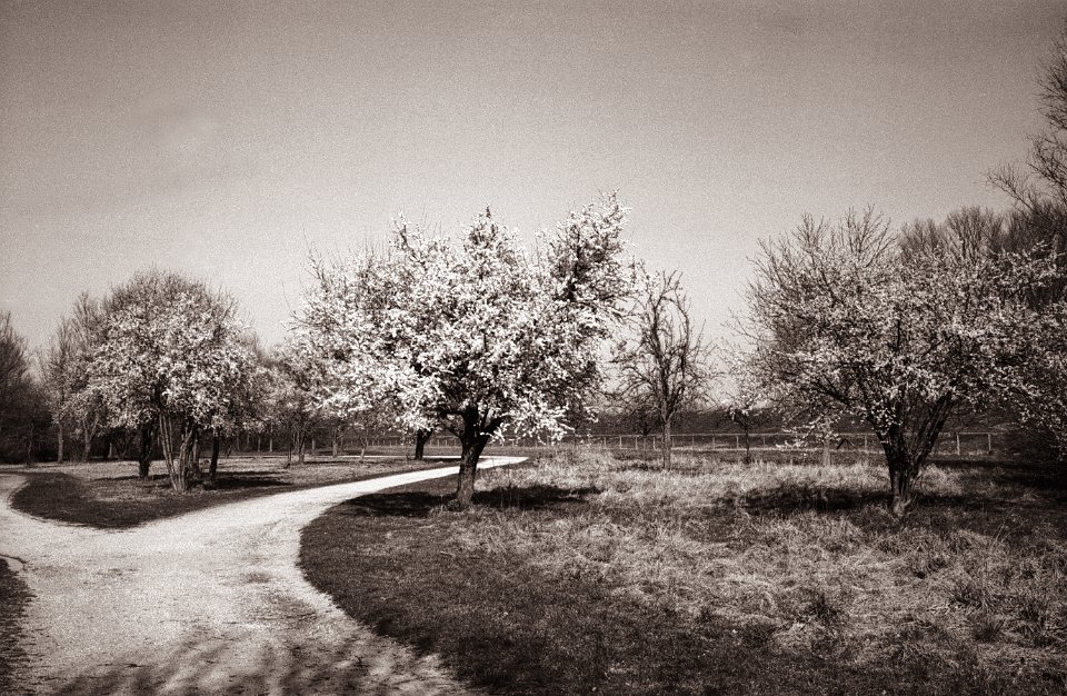 55 Blühender Baum am Hang Pentax 645N, SMC FA 2.8/150, Rollei RPX 100@100 |