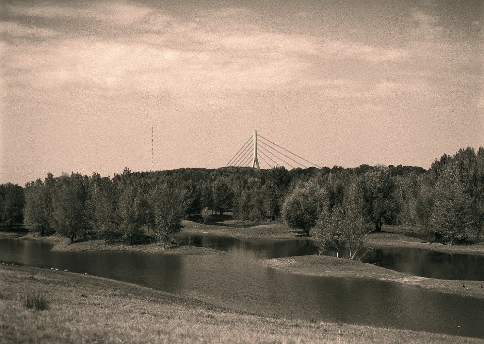 38 Eisenbahnviadukt mit Botschaft Pentax LX, SMC 2.0/35; Foma Retropan 320@160 |