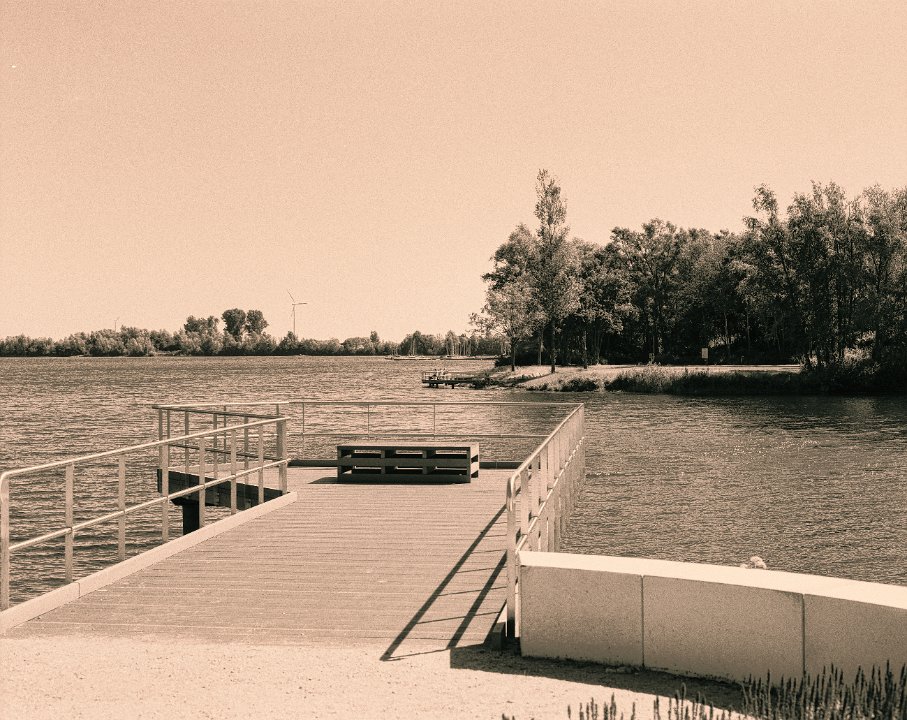 45 Fähranlegestelle bei Hochwasser Pentax 645N, SMC FA 2.8/45, Gelbfilter, Bergger Pancro 400@250 |