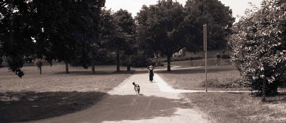 6 Frau mit Hund in Xanten Fuji GW 690 III; Cube 400c - Juni 2003 - |