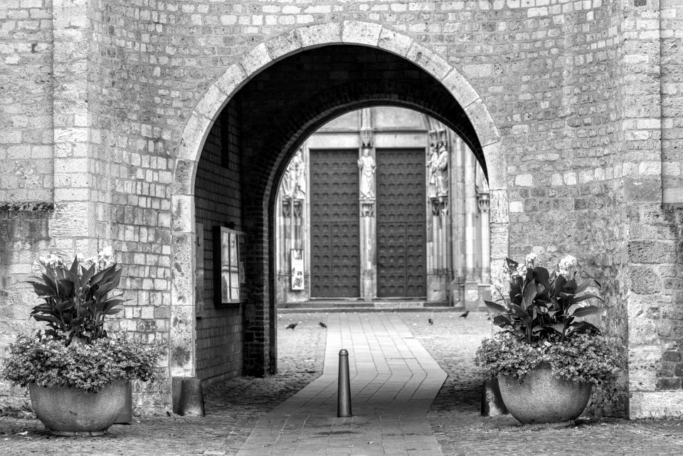 48 Durchgang zum Dom Pentax MZ-S, SMC FA 1.8/77 Limited, Gelbfilter, Adox CHS100II@64 - 01.02.2017 |