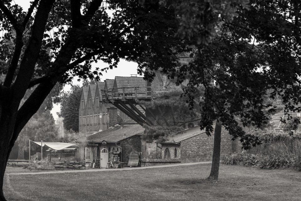 50 Domhütte - Werkstatthof Pentax 645N, 2.8/75, Gelbfilter, Ilford HP5plus@800 |