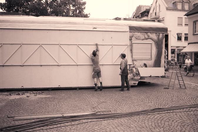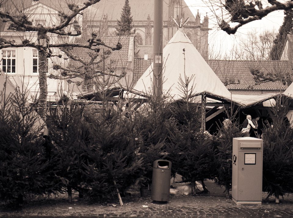 31 Vorbereitung auf den Weihnachtsmarkt Pentax LX, Adapter+Zeiss Planar 1.4/50; Ilford HP5plus@250 |