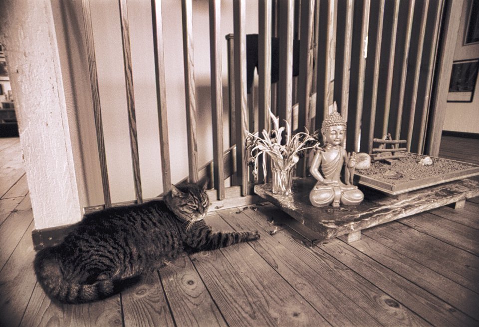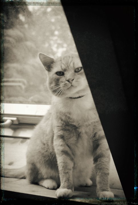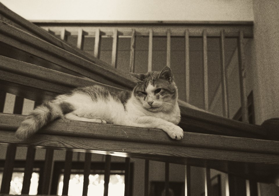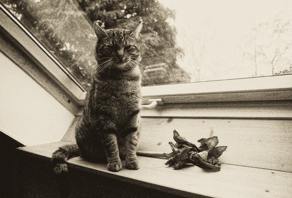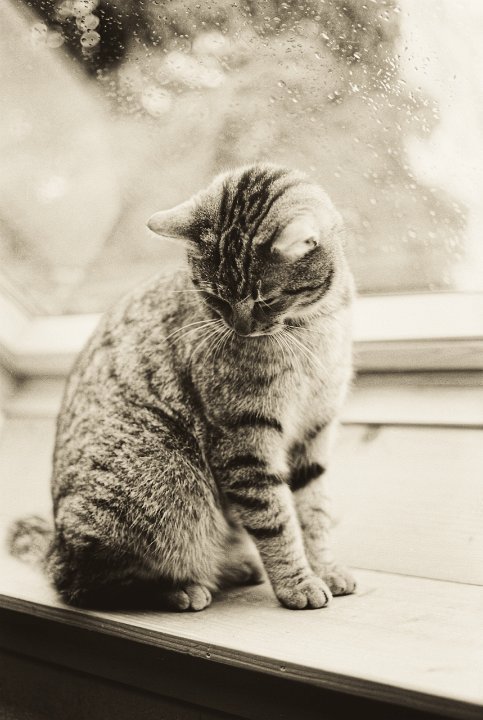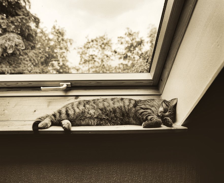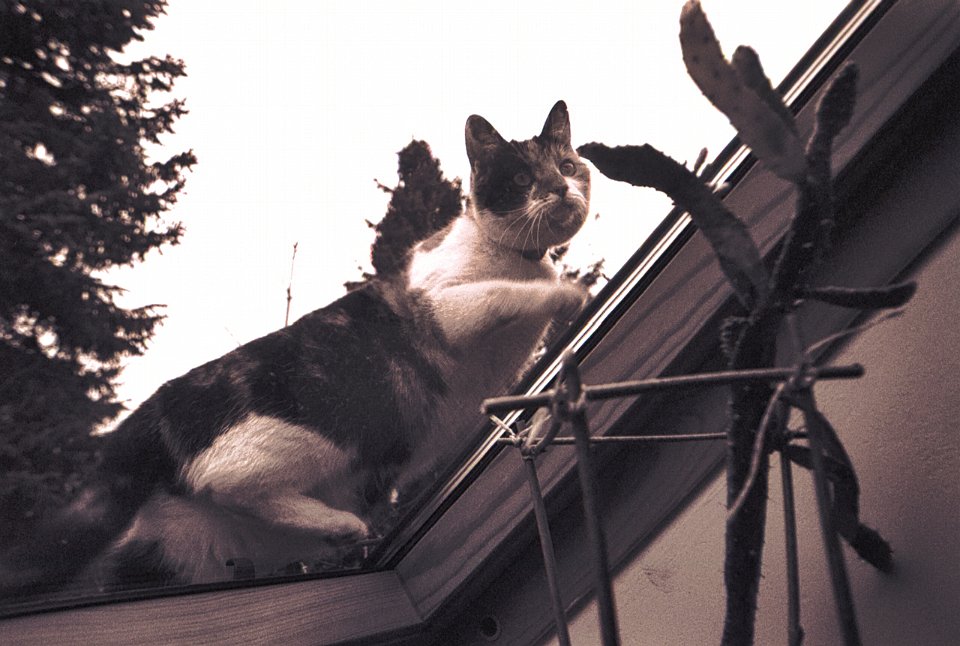 40 Mito schläft am Dachfenster Pentax 67II, SMC 4.0/45, Fuji Acros @100