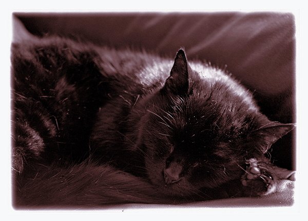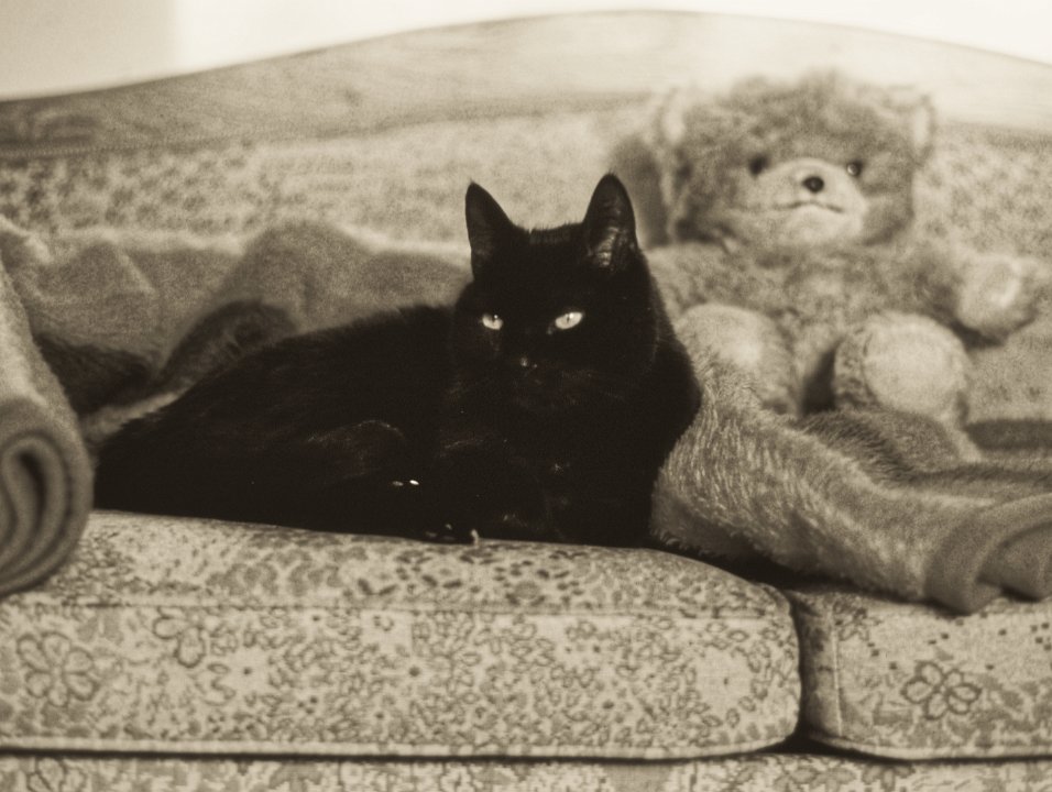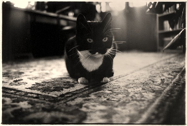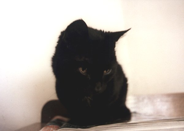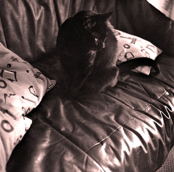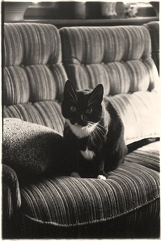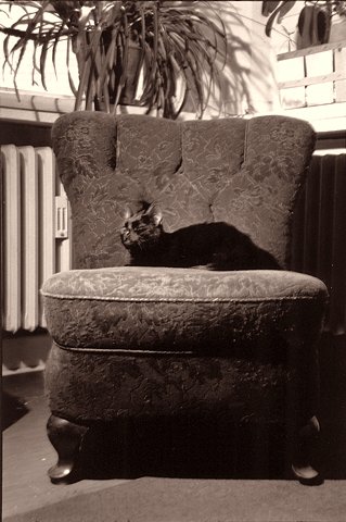7 Felix auf dem Sofa im Turm Yashica TL elektro, 3.5/35-70, IlfordHP5 , 1978 |