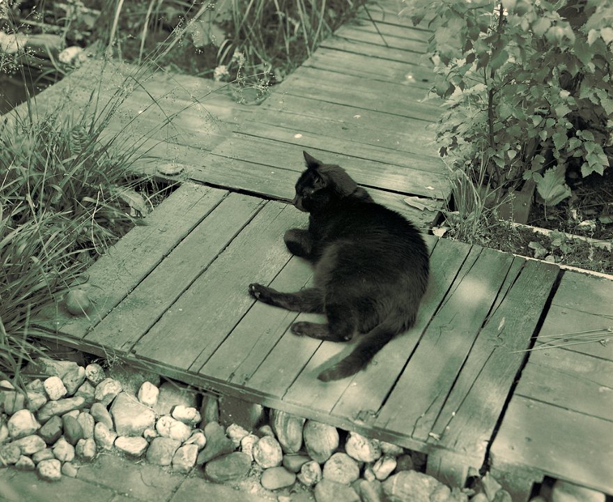 22 Foxi im Garten Quergasse Pentax 6x7, 2.4/105, Agfapan 400 - 1993 - |