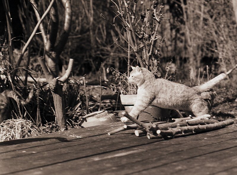 31 Grey spielt auf dem Teichsteg Pentax LX, 2.5/135 Takumar Bayonet, Foma Retropan 320 |