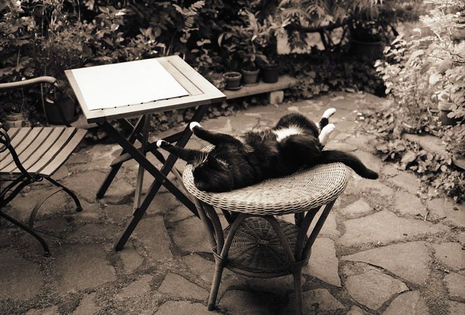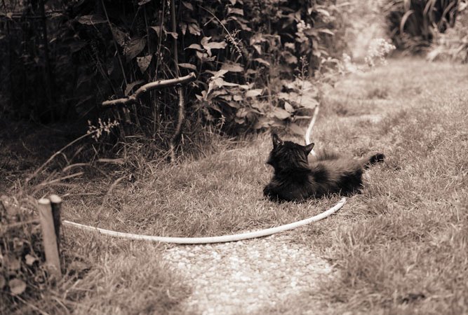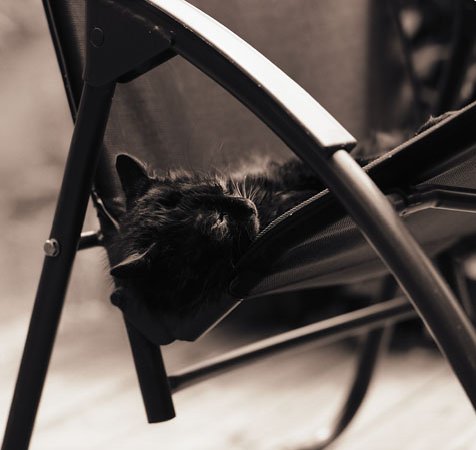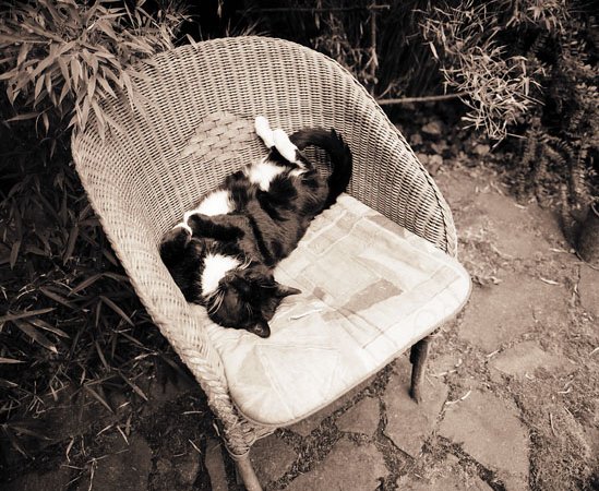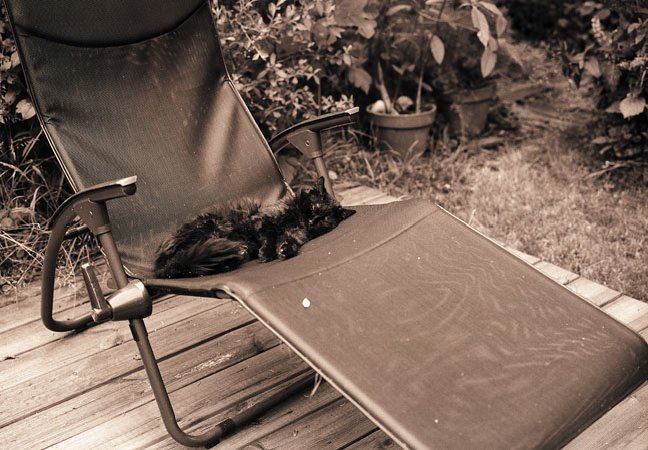59 Wuschel in der Gartenklappliege Pentax 6x7; 4.0/200; Fuji 100 Acros - 14. Juni 2008 - |