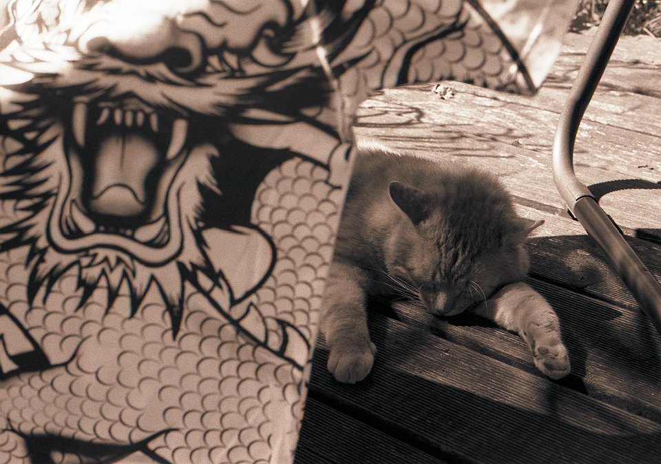 93 Schlaf hinterm kleinen Torii Pentax 67II, 4.0/200, 400TX/400 |