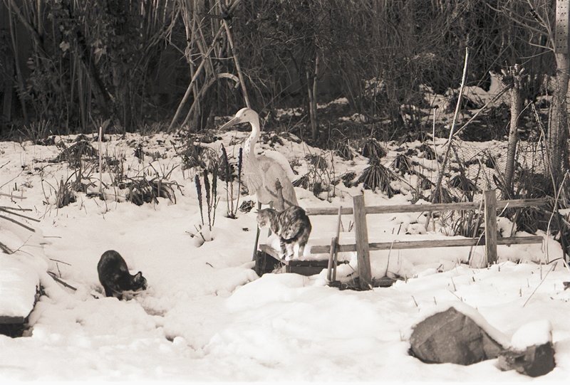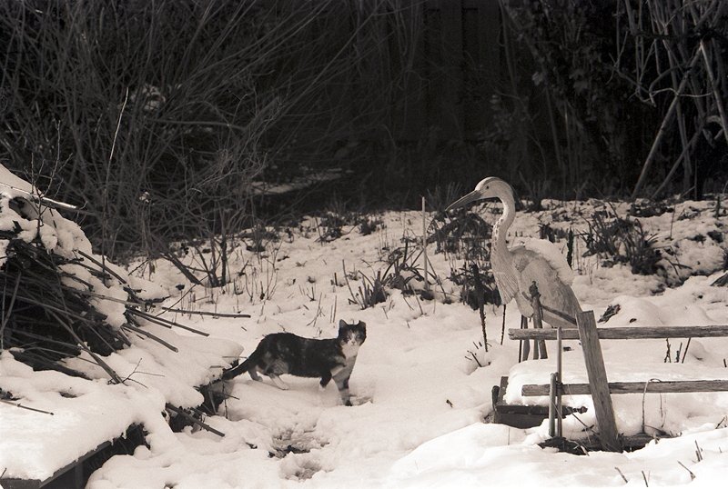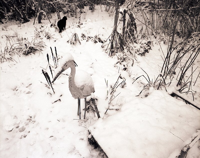 7 Reiher und Brüderchen im Schnee Pentax 67II, 4.0/45, 400TX/250 - 16.01.2013 - |