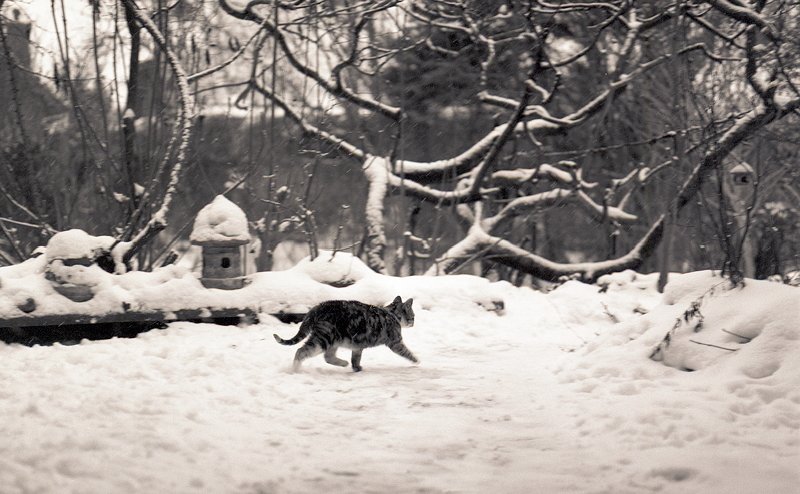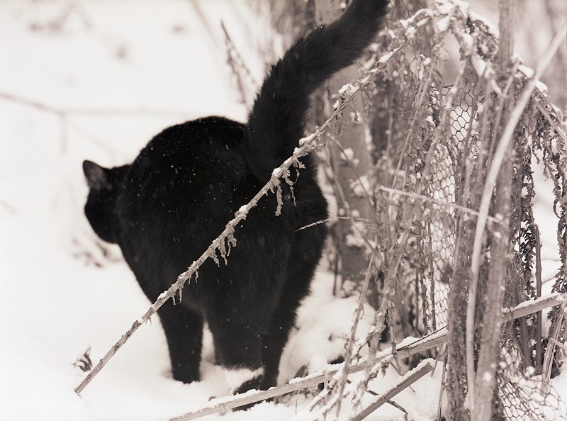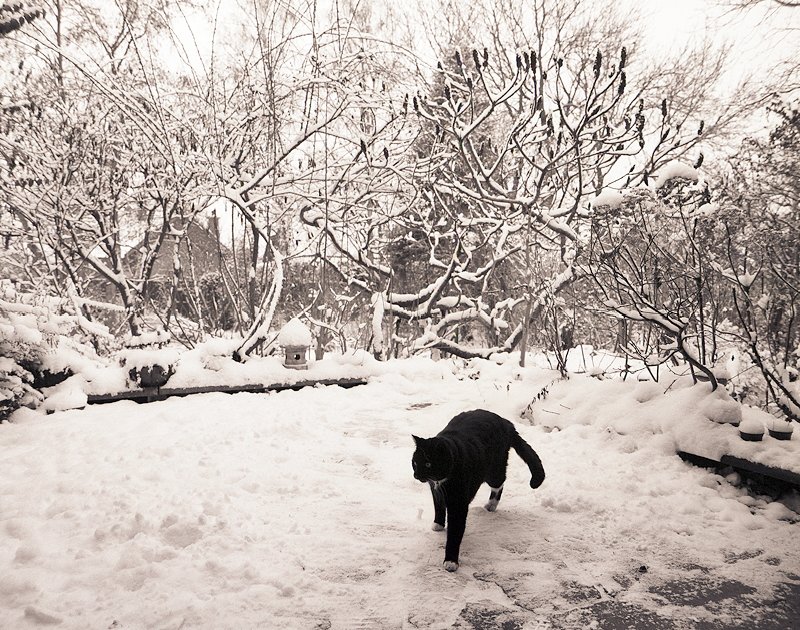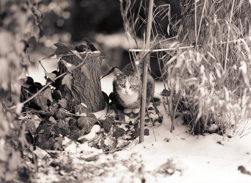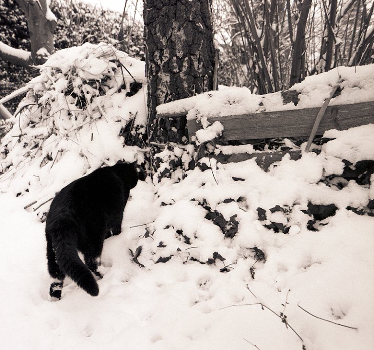6 Kater Brüderchen im Schnee auf der Terrasse Pentax 67II, 4.0/45, 400TX/250 - 16.01.2013 - |