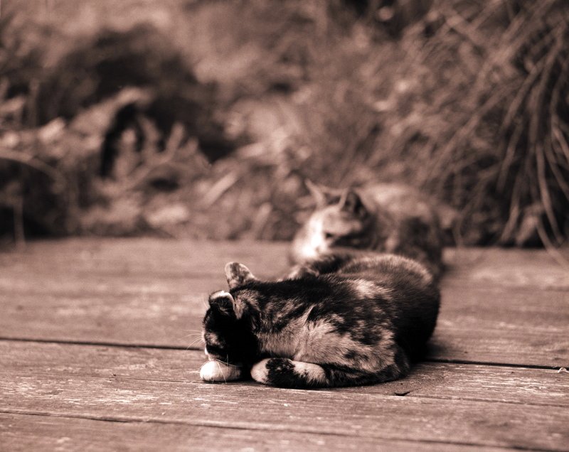 4 Kleine Herbstkatzen FuMao und Middle Pentax 67II, 2.4/105, 400TX/1600 |