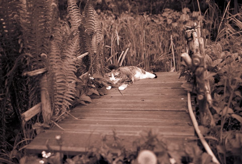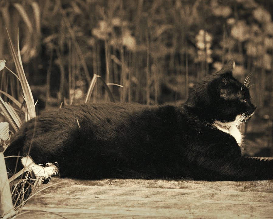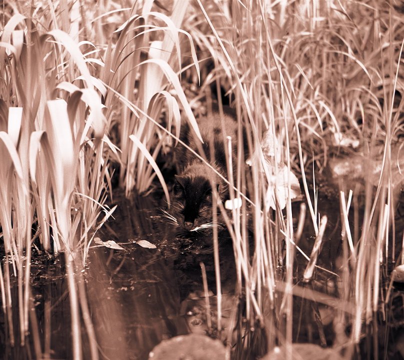 12 Rota schläft auf dem Teichsteg Pentax 67II, SMC Takumar 2.8/150, Gelbfilter, Acros 100/64 |