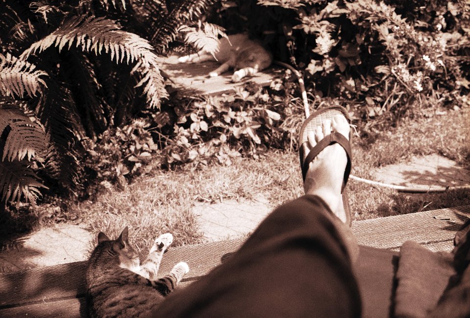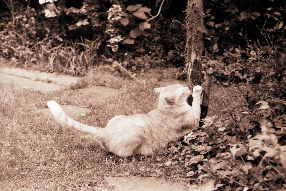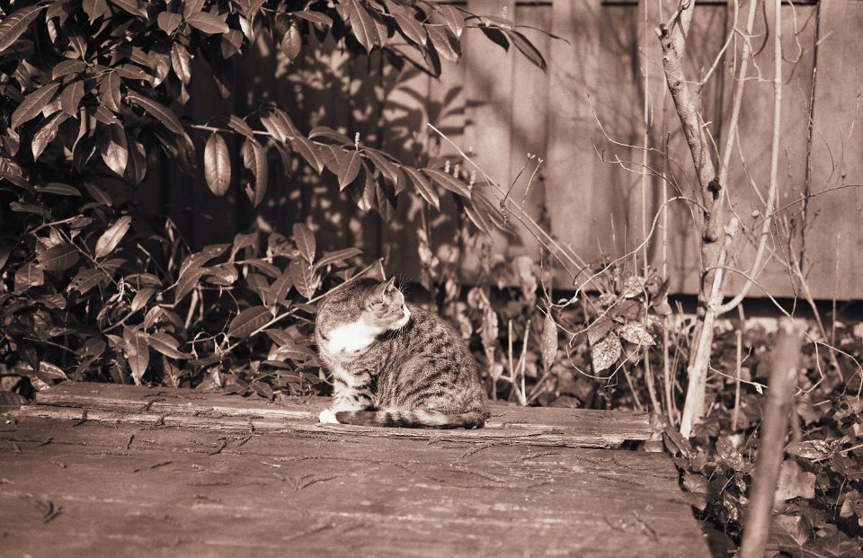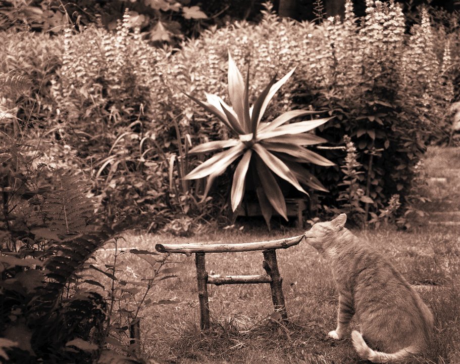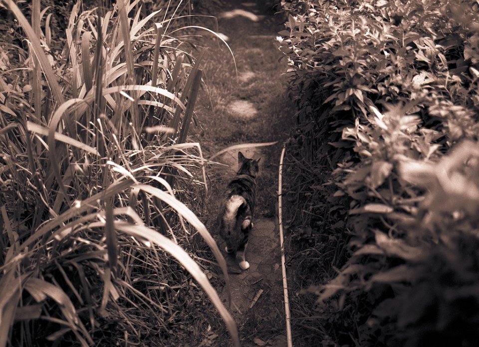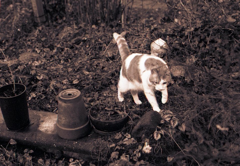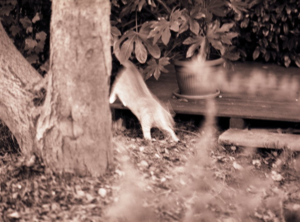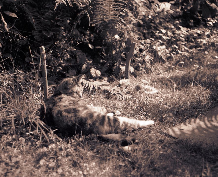 89 Gartenblick mit Katze Middle Pentax 67II, SMC Takumar 4.5/75, Adox CHS100@50 |