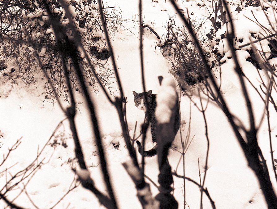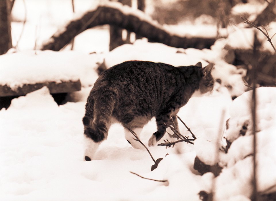 40 Katze Grey im Schnee Pentax 645N, 2.8/150, Ilford HP5+@400 |