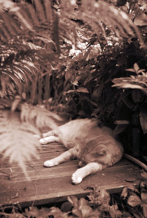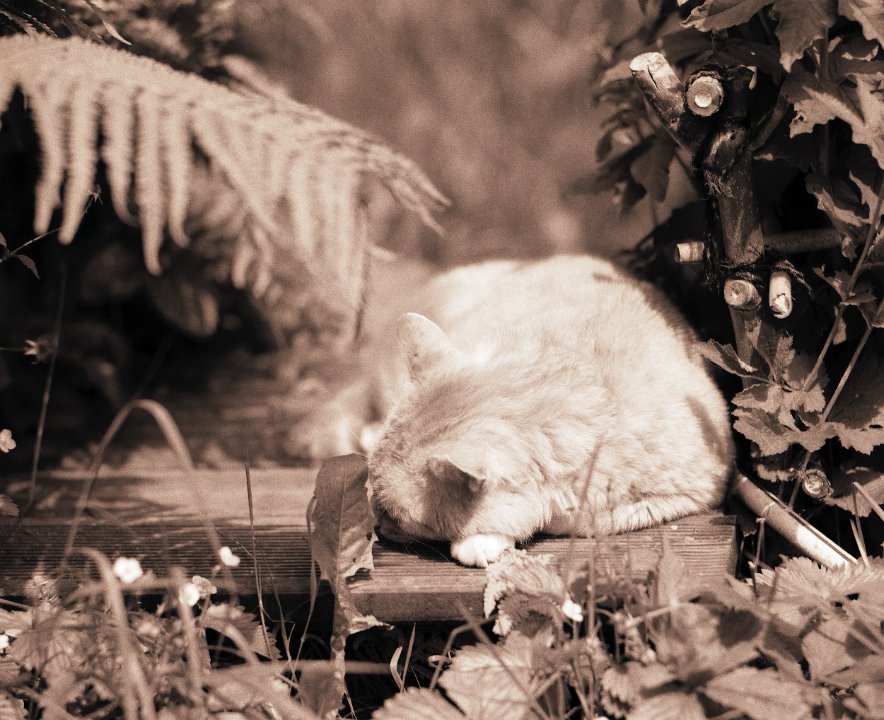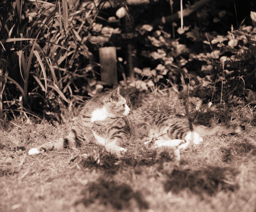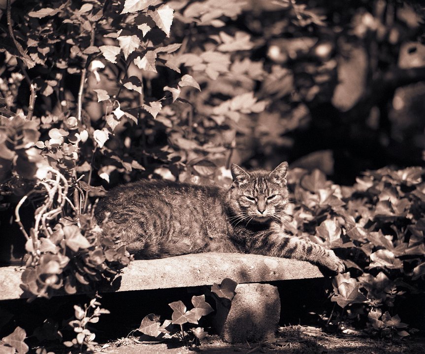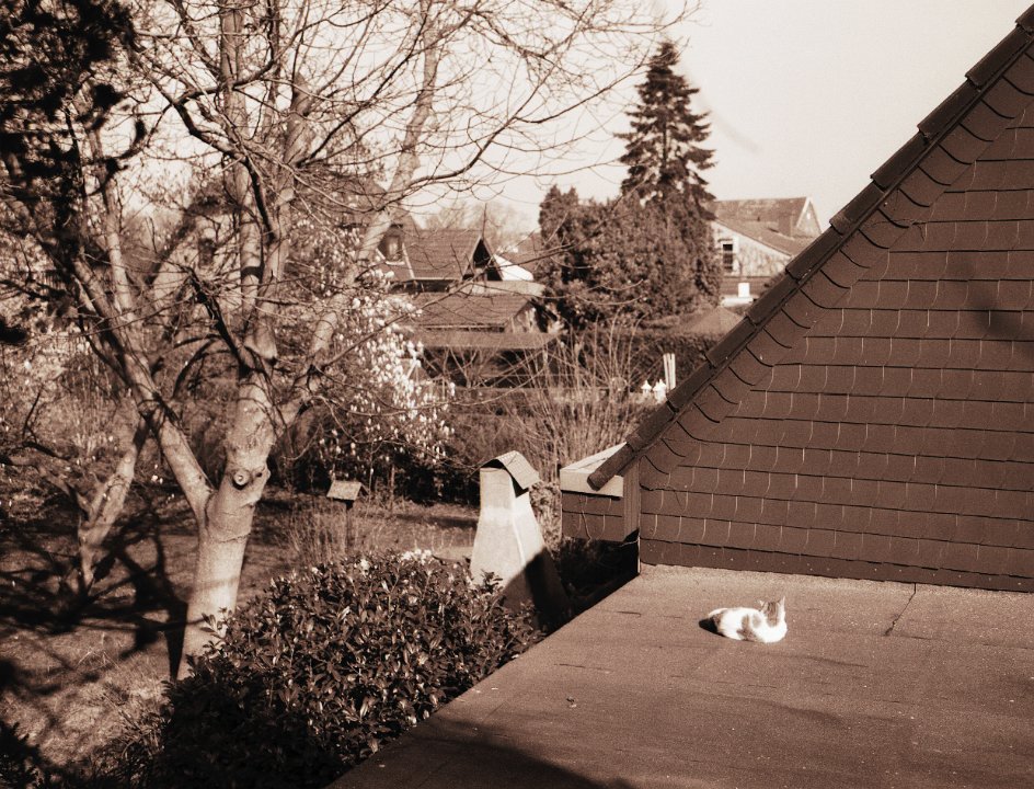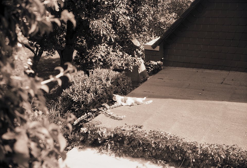 70 Der Garten schweigt , der Kater schläft Pentax 645N, 2.8/45, Gelbfilter mittel, Adox CHS100@64 |