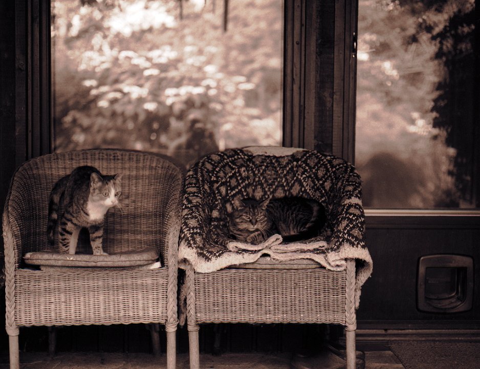 63 Grey und Alice auf der Terrasse Pentax 645N, 2.8/75, Adox CHS 100@80 |