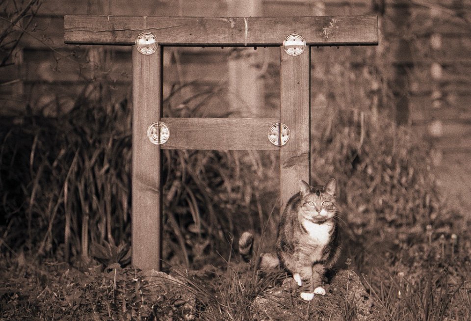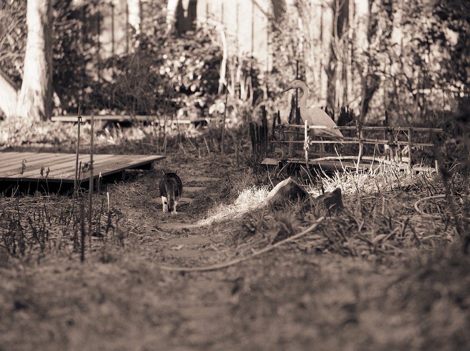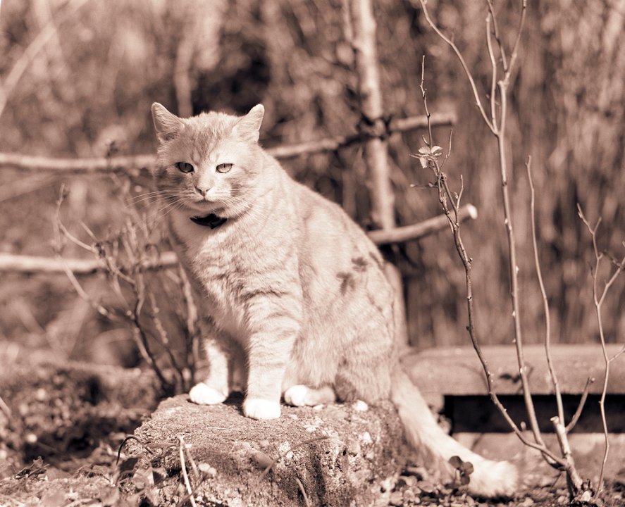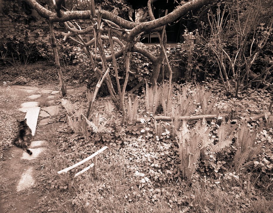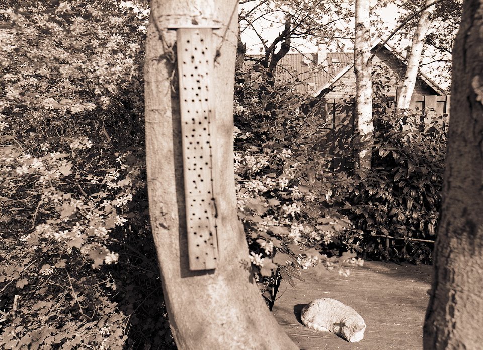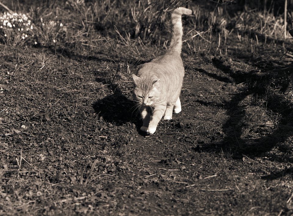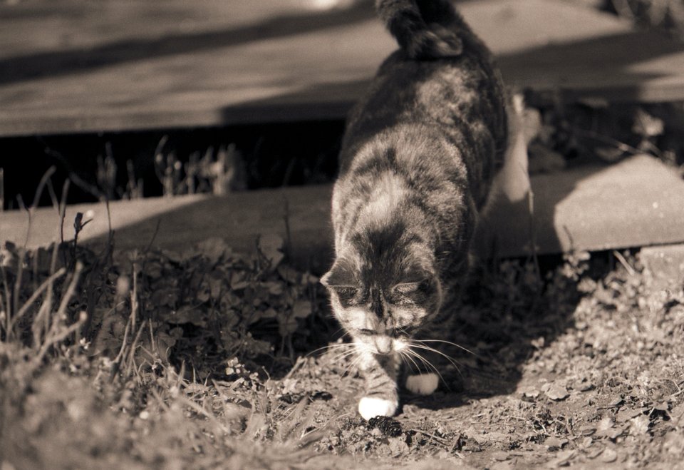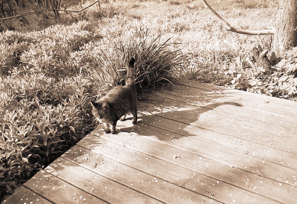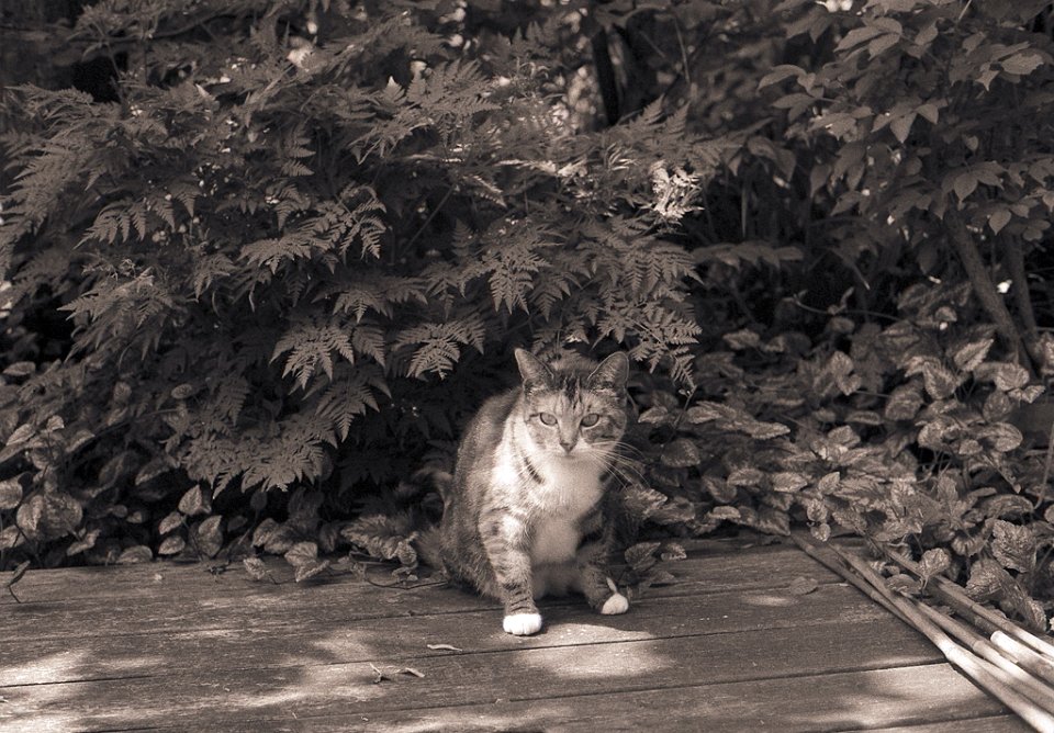 38 Rota schläft auf dem Gartenweg Seagull 4A103-HAIOU 3.5/75, Rollei RPX100@100 |
