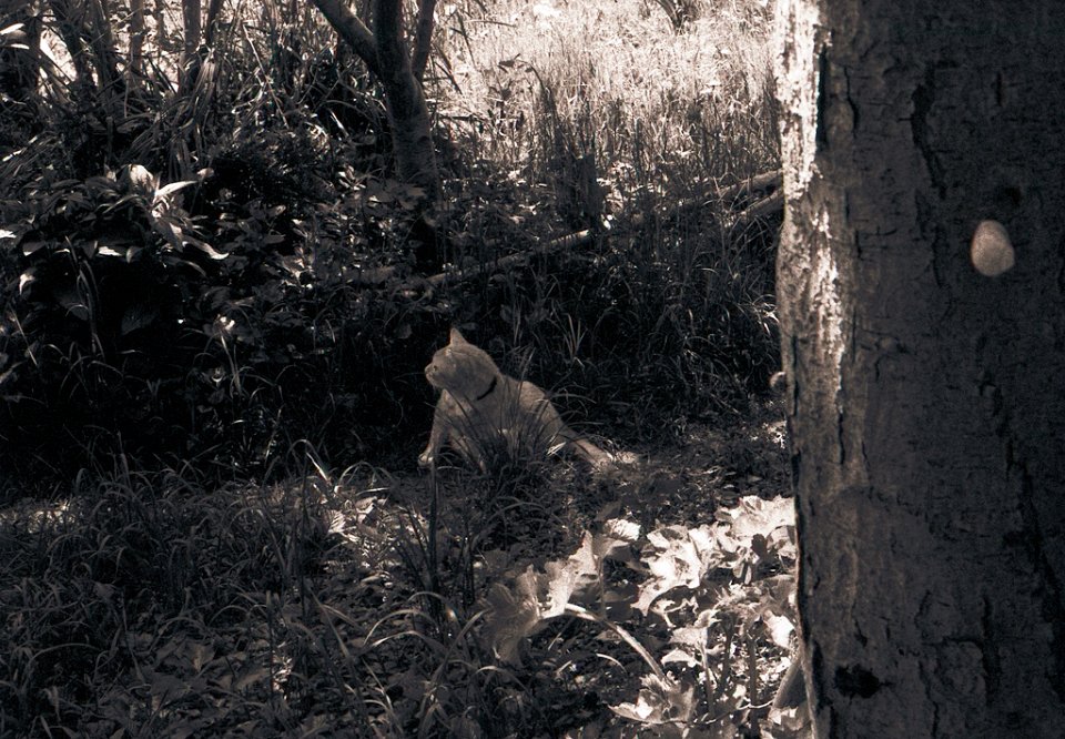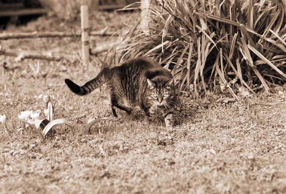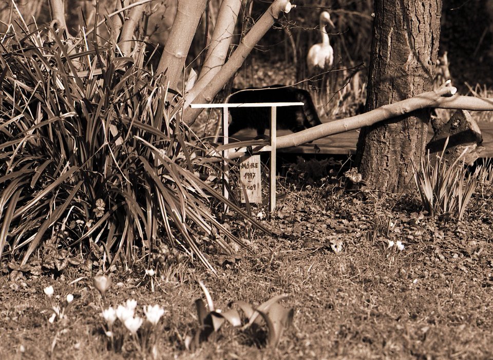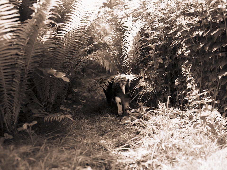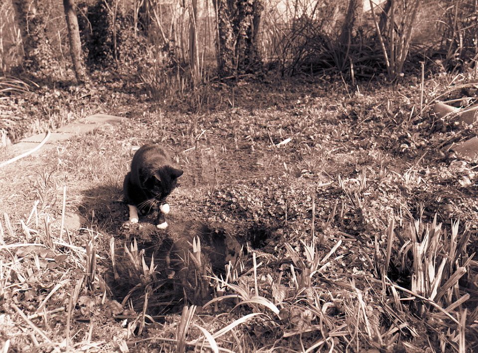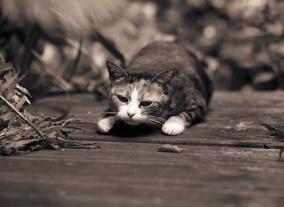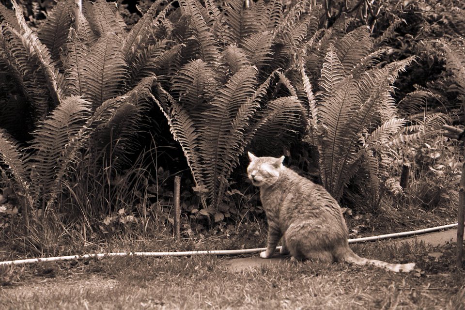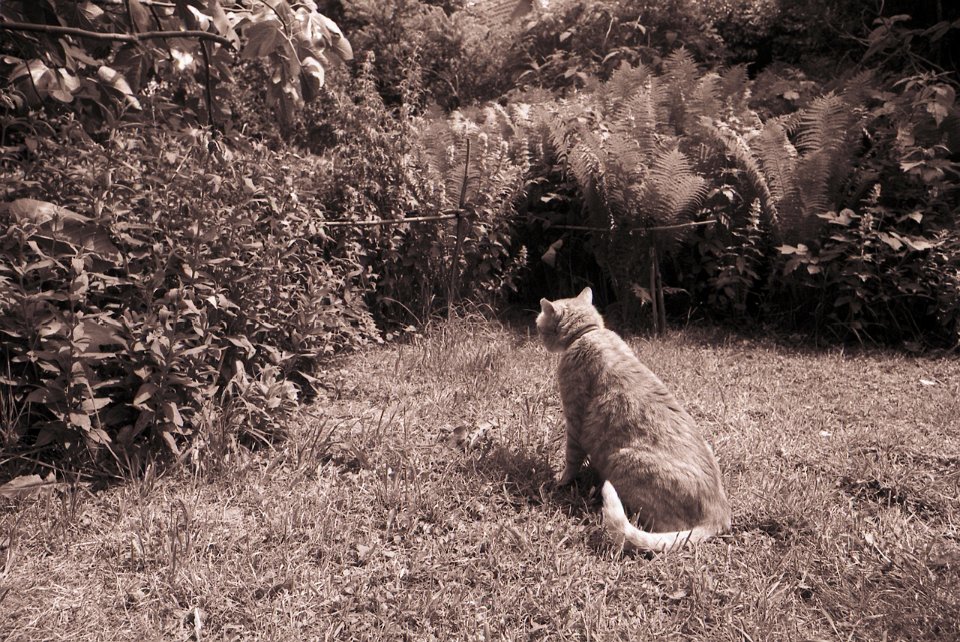 38 Rota schläft auf dem Gartenweg Seagull 4A103-HAIOU 3.5/75, Rollei RPX100@100 |