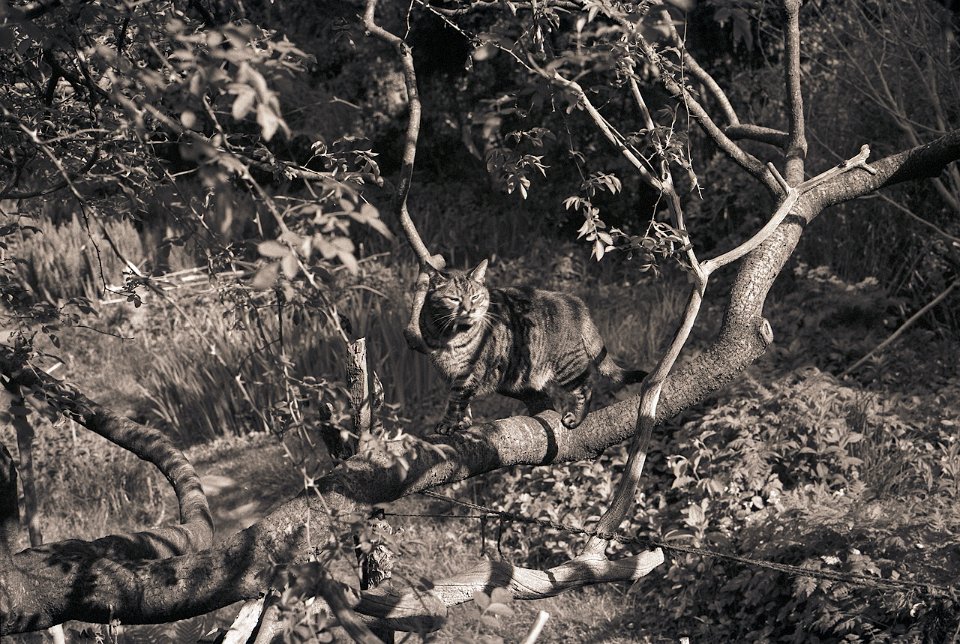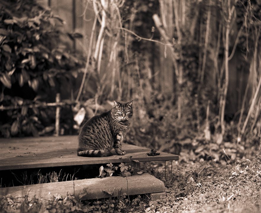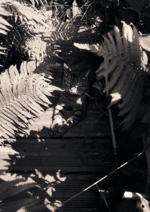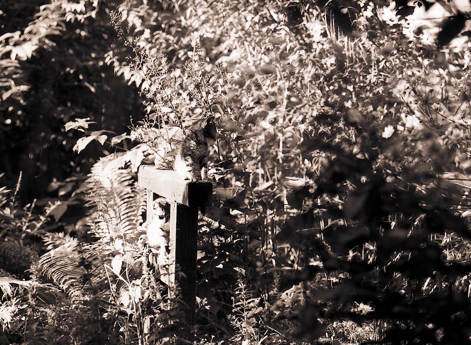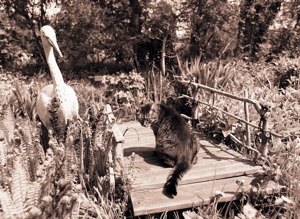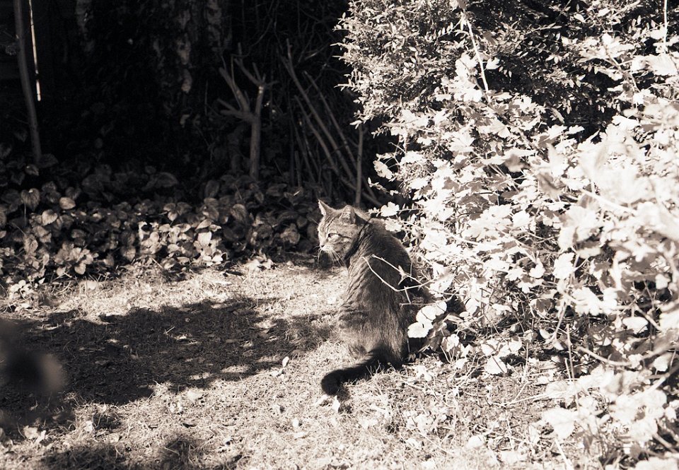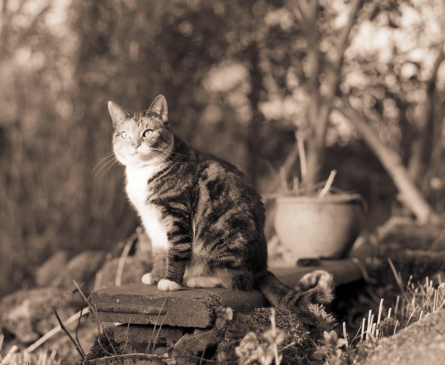 37 Gastkater Theo am Teichsteg Pentax 645N, 2.8/45, Gelbfilter, Ilford HP5plus@250 |