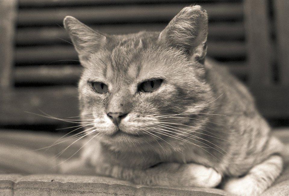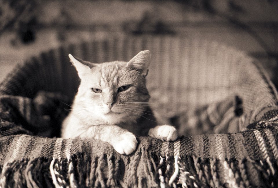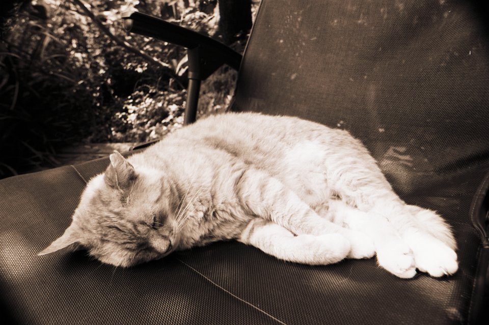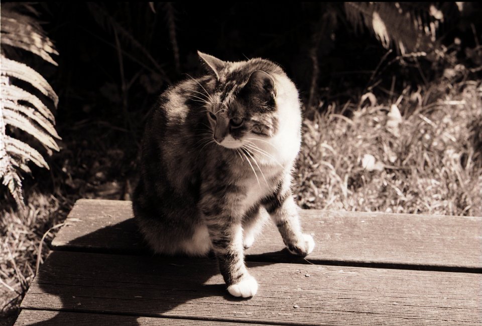 36 Sammy im Terrassensessel Pentax LX, 2.5/135 Takumar Bayonet, Bergger BRF400 @400 |