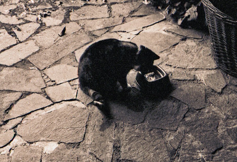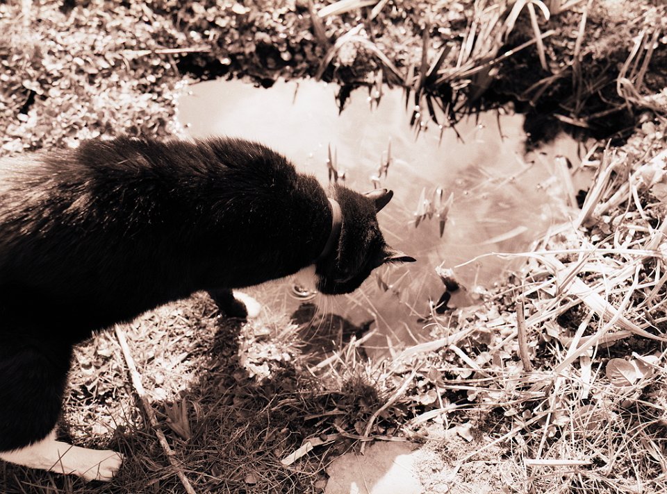164 Spiegelbild im Wassernapf Pentax K2, SMC 2.0/35, Bergger Pancro 400@1200 |