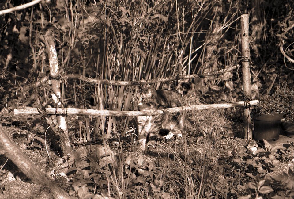 162 Mito auf dem Zaun Pentax K2, SMC 2.4/105 (67er), Pancro 400@800 |