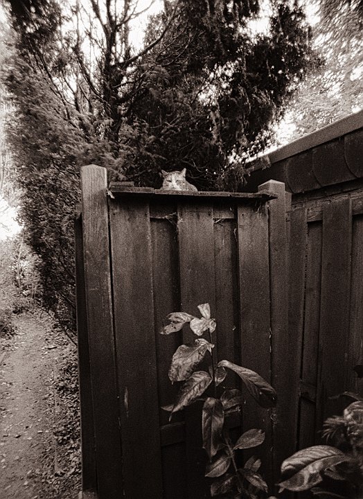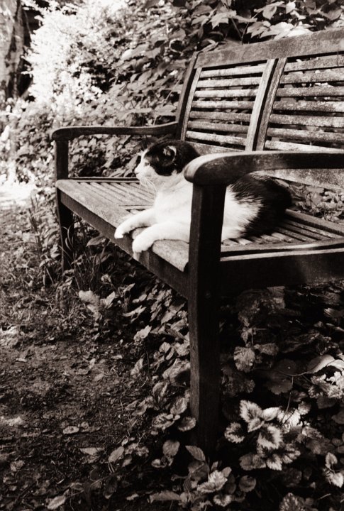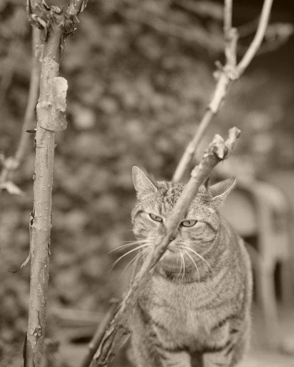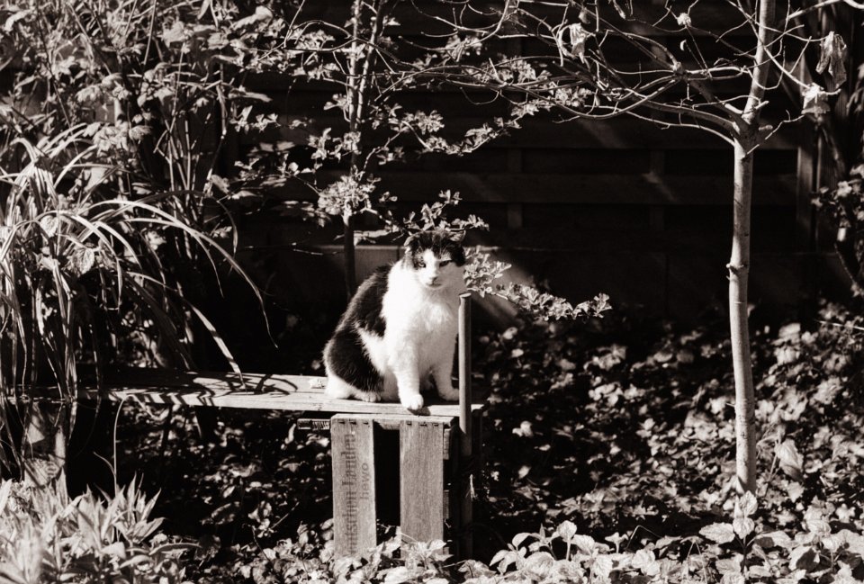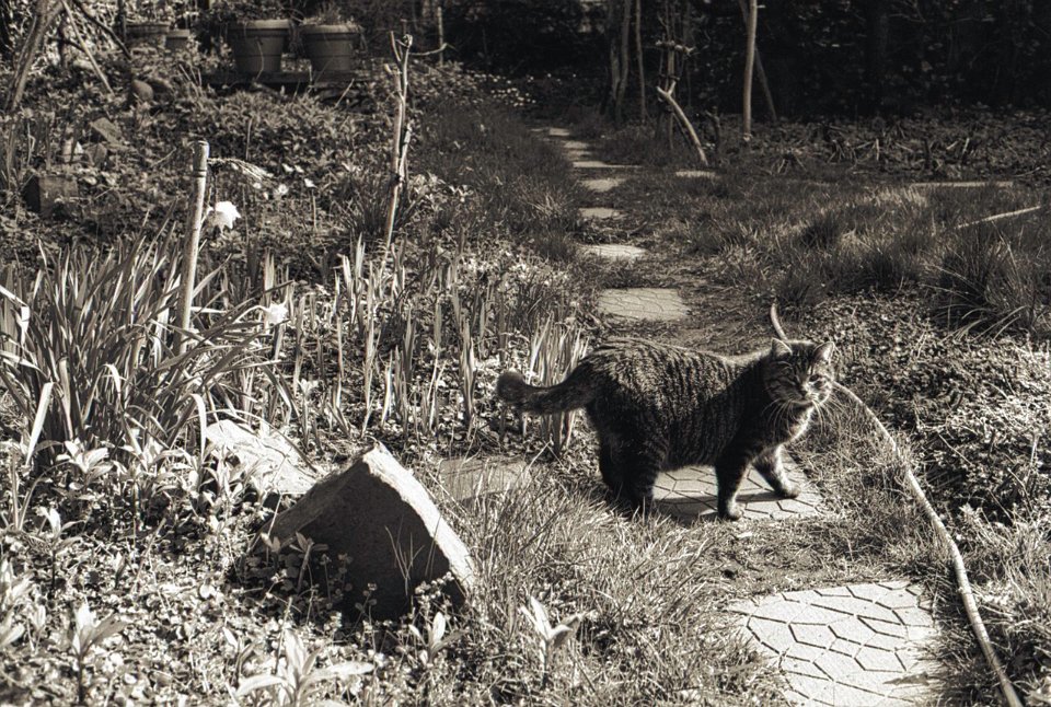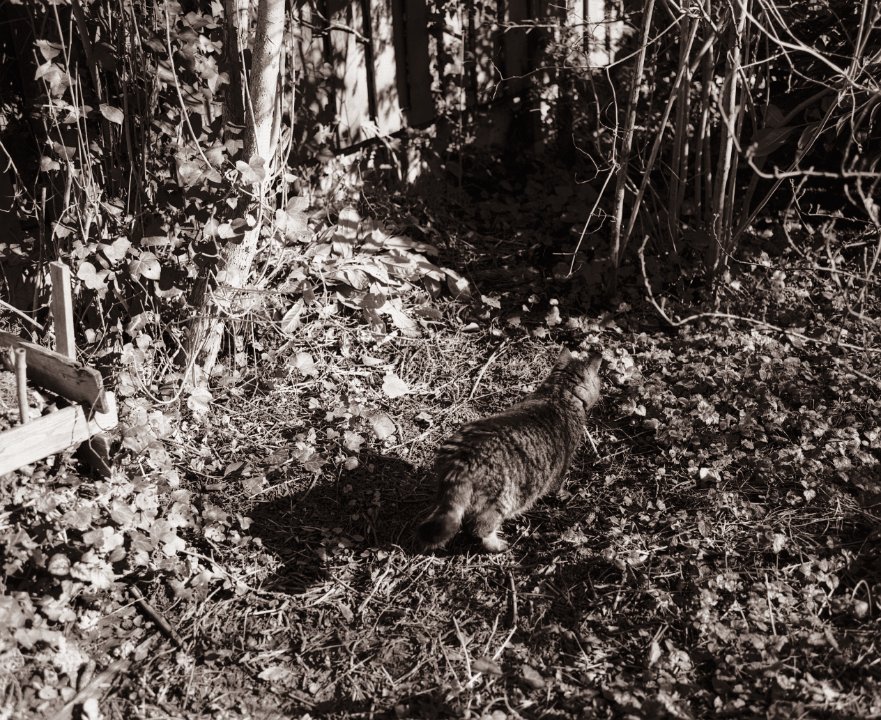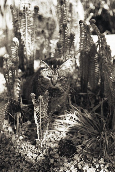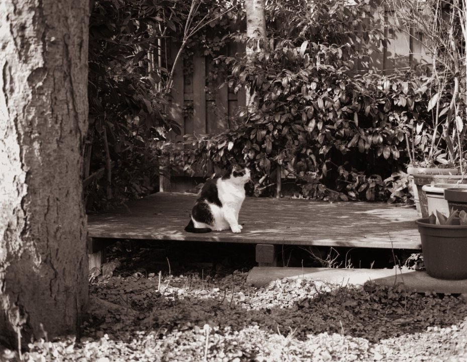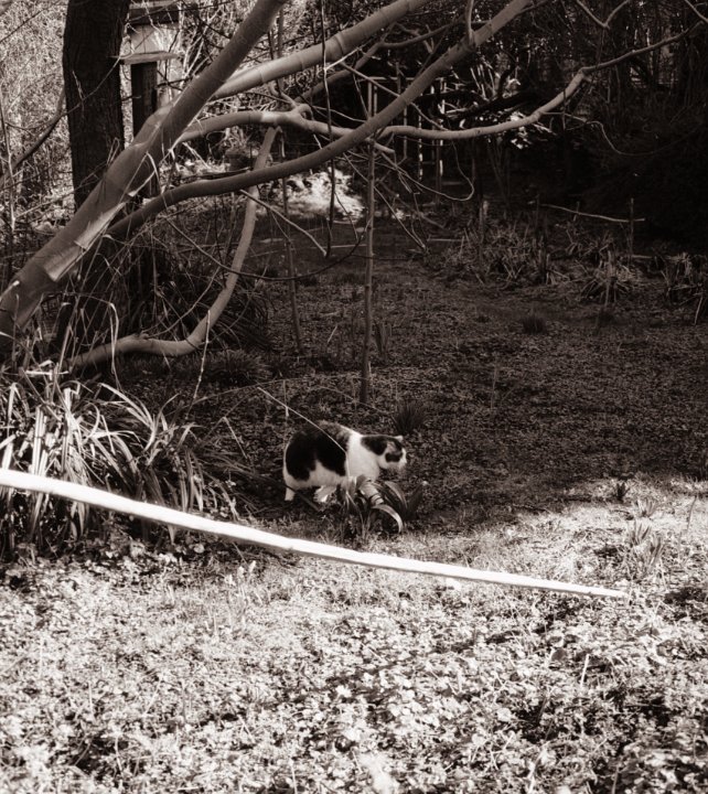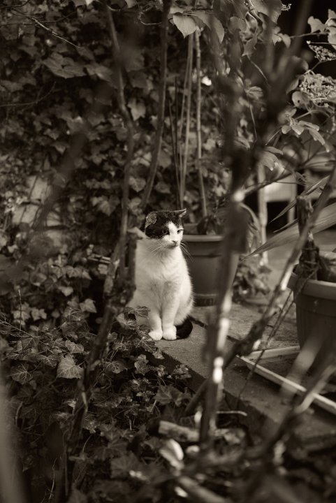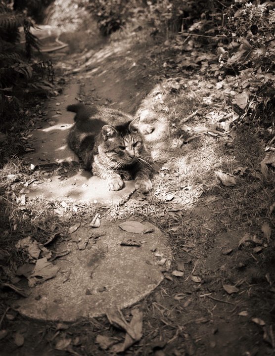 82 Gartenansicht mit Kater Harlekin Pentax 6x7, SMC Takumar 3.5/55, Fuji Acros 100II@64 |