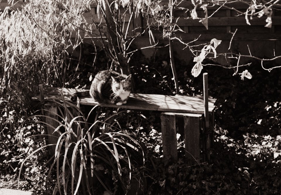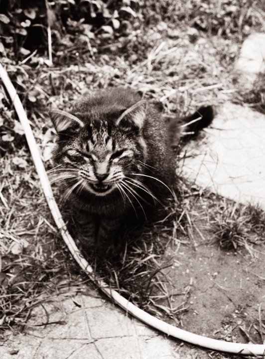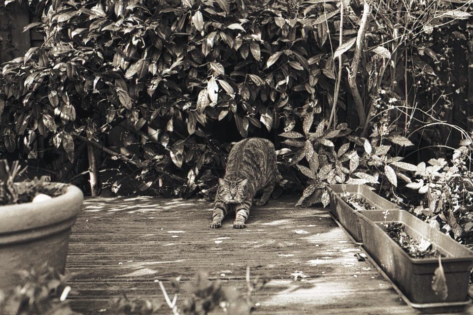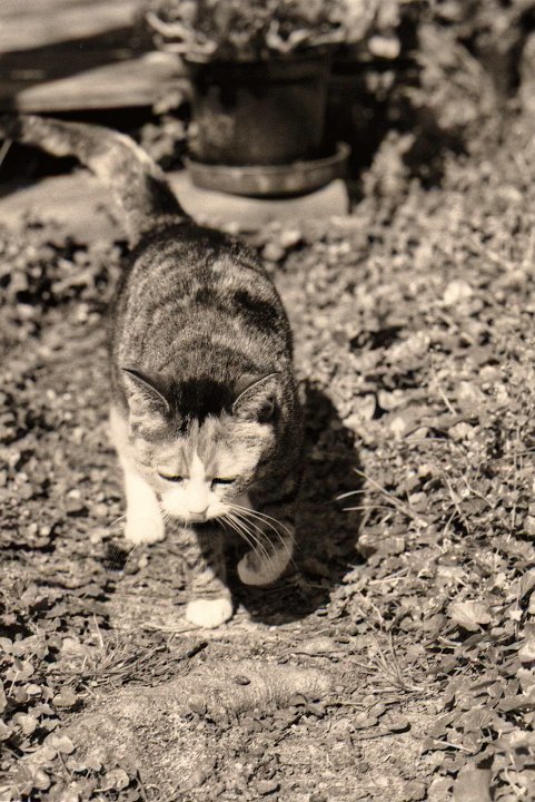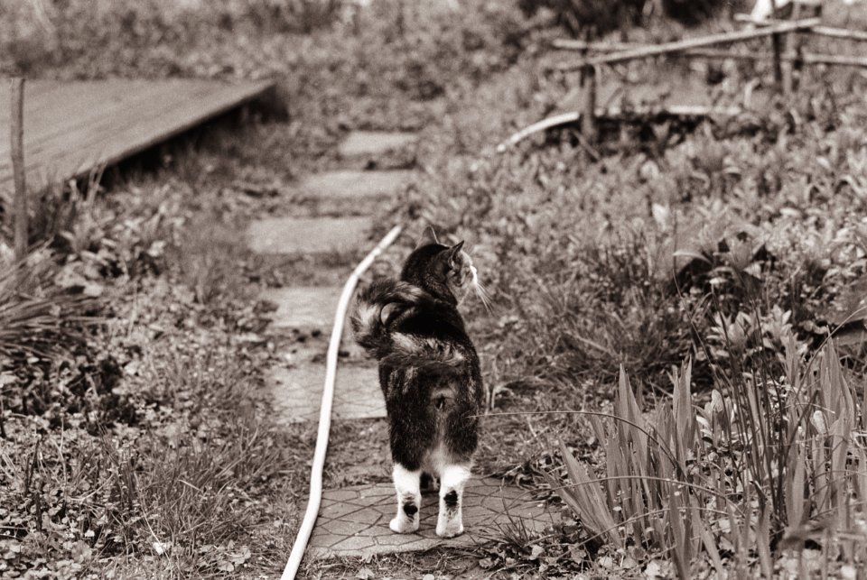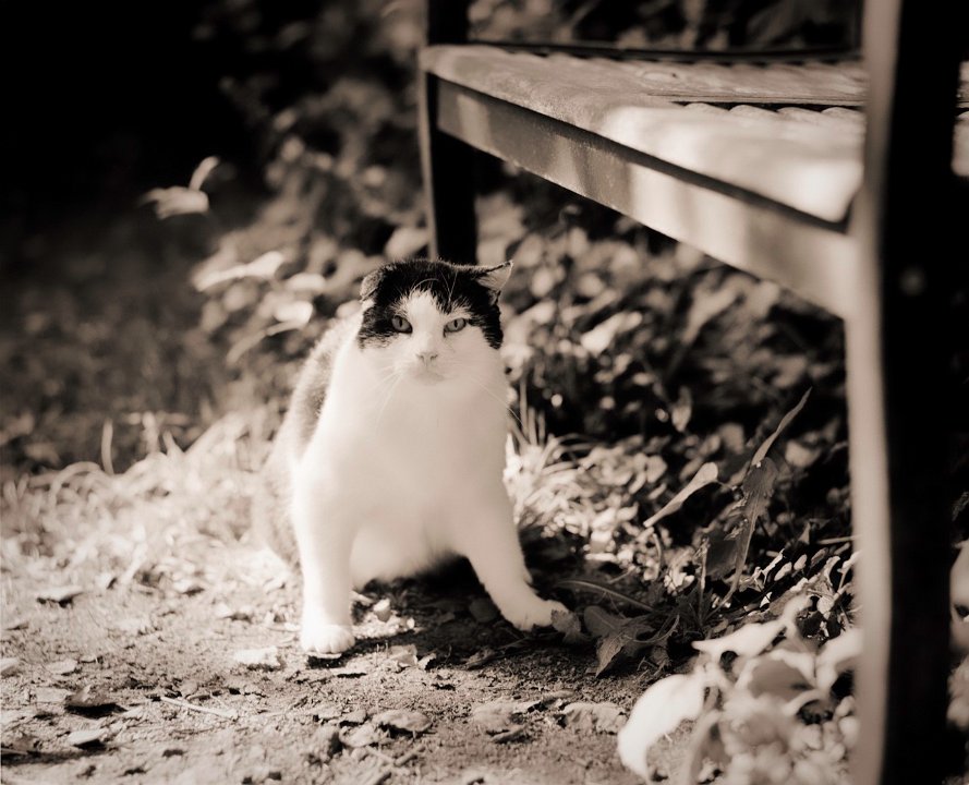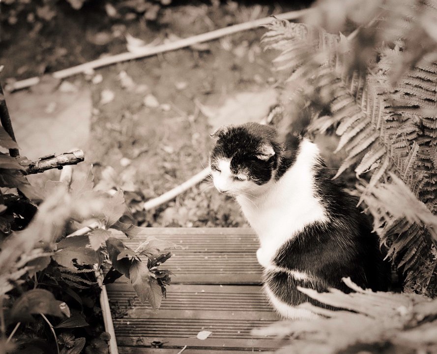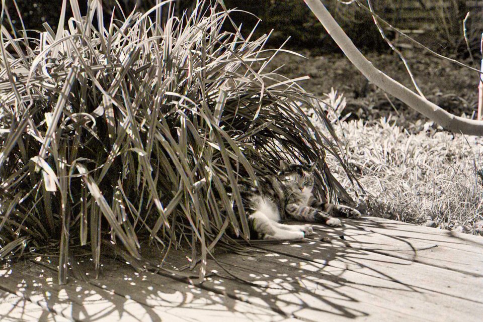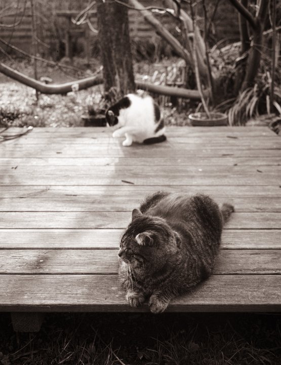 82 Gartenansicht mit Kater Harlekin Pentax 6x7, SMC Takumar 3.5/55, Fuji Acros 100II@64 |