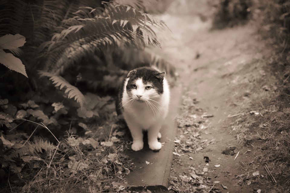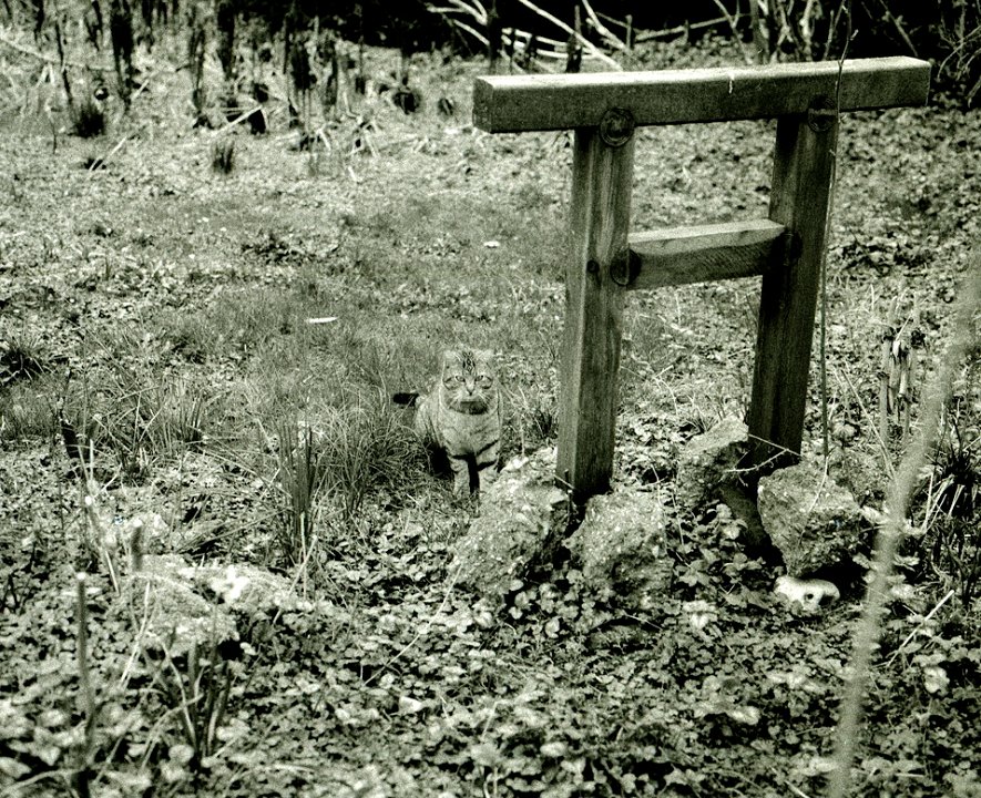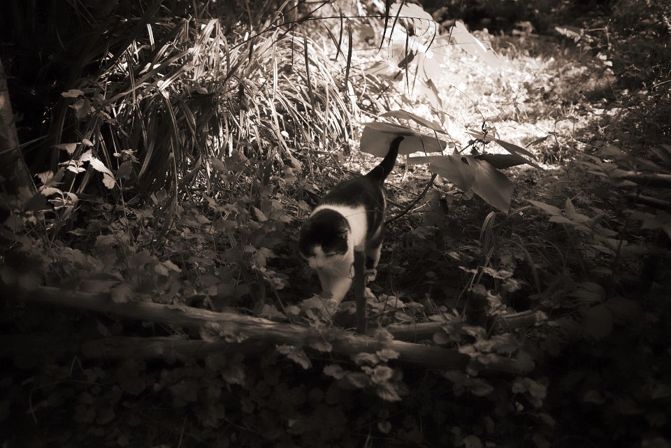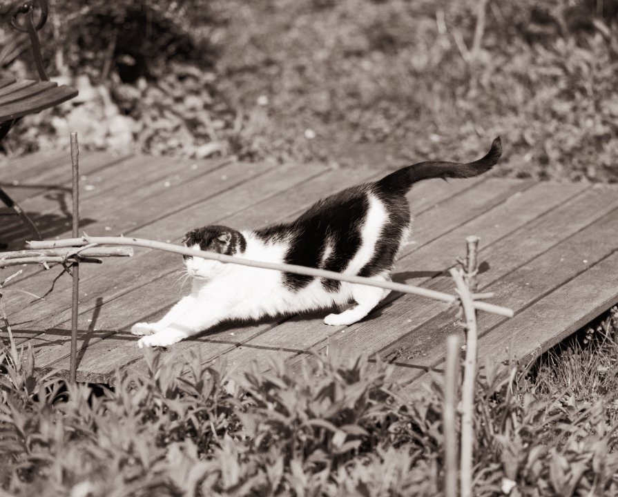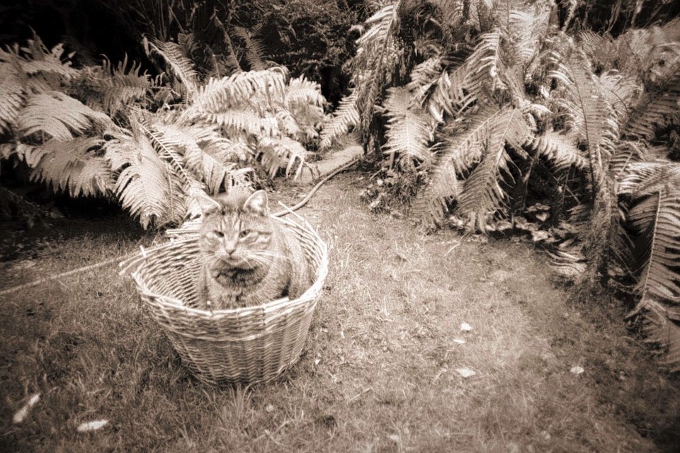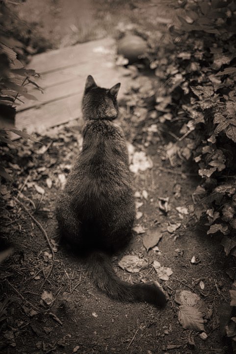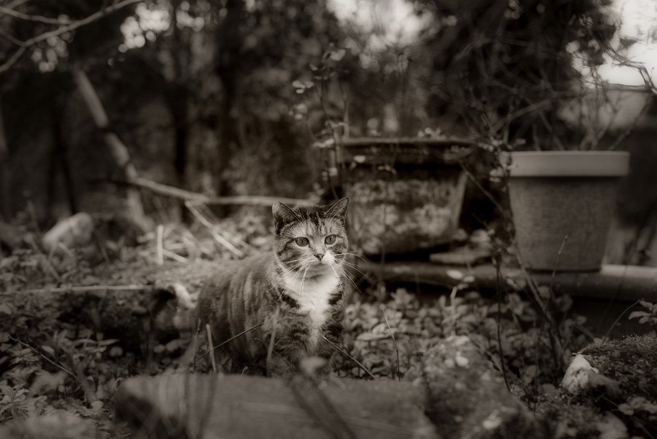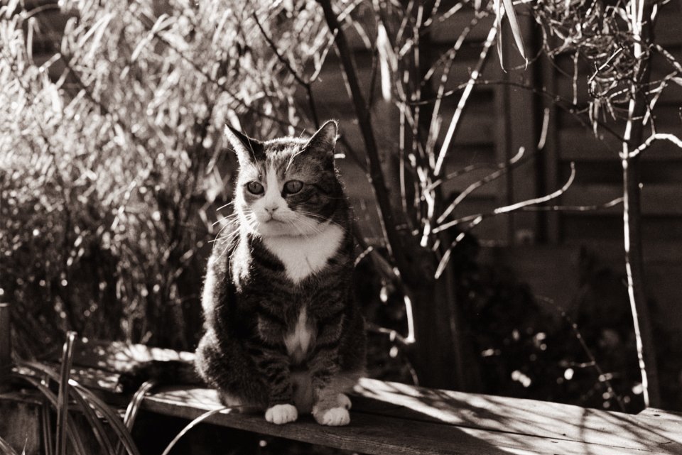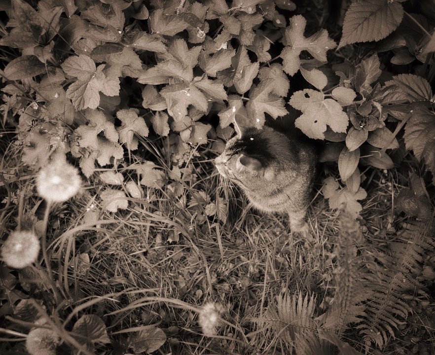 82 Gartenansicht mit Kater Harlekin Pentax 6x7, SMC Takumar 3.5/55, Fuji Acros 100II@64 |