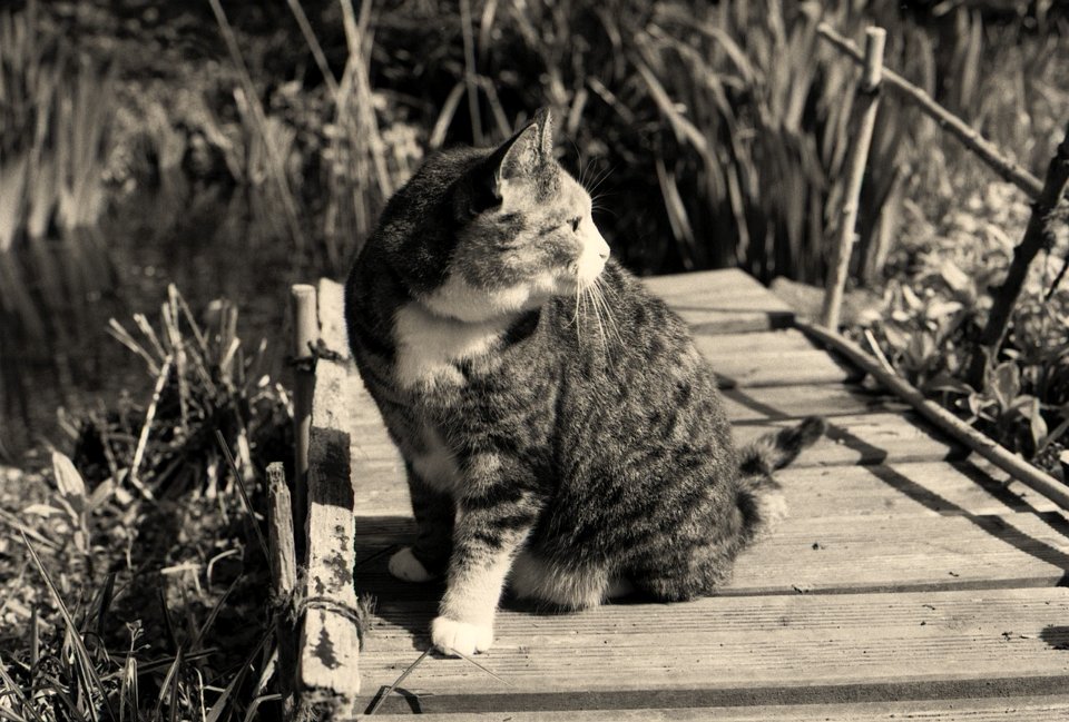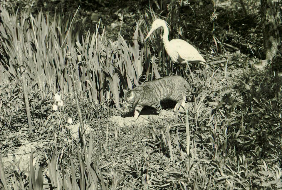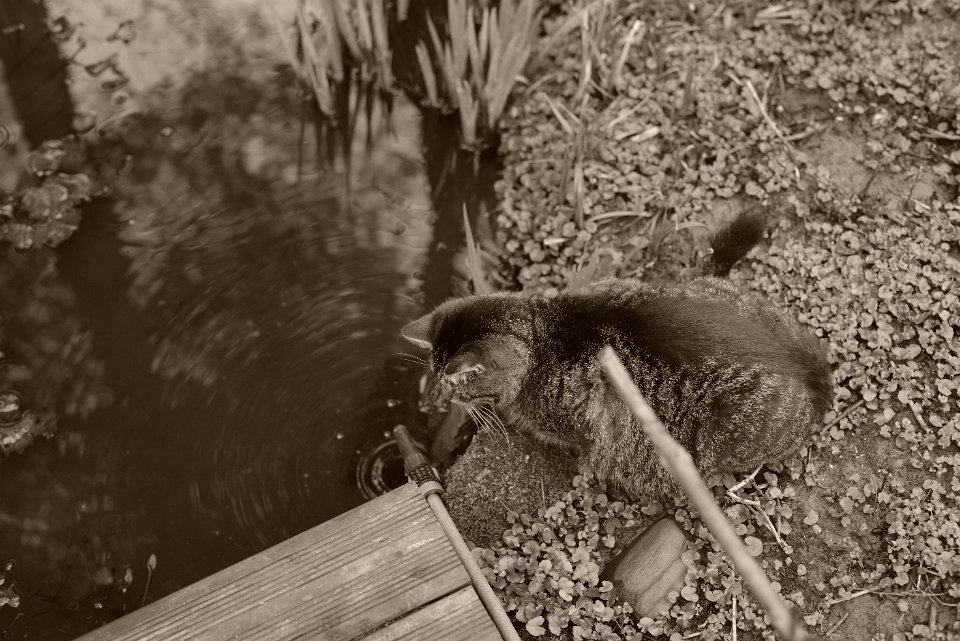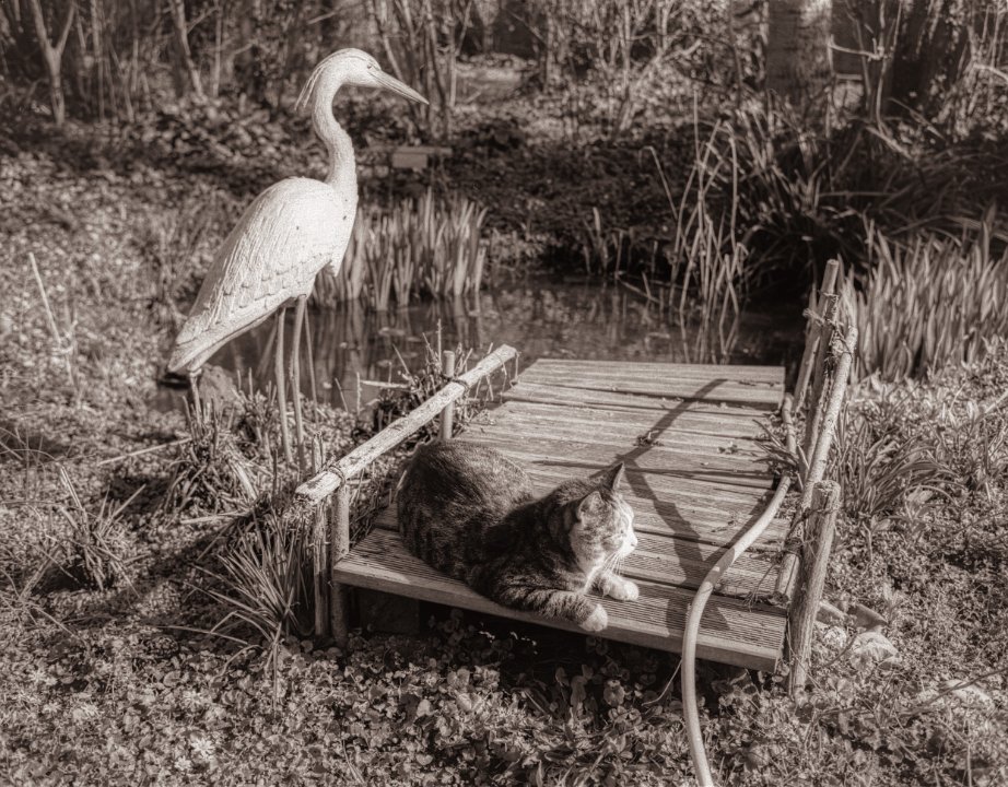 86 Kater und Reiher am Teich Pentax K2, SMC 2.8/24, Gelbfilter, Adox CHS 100 II - 17.05.2021 - |