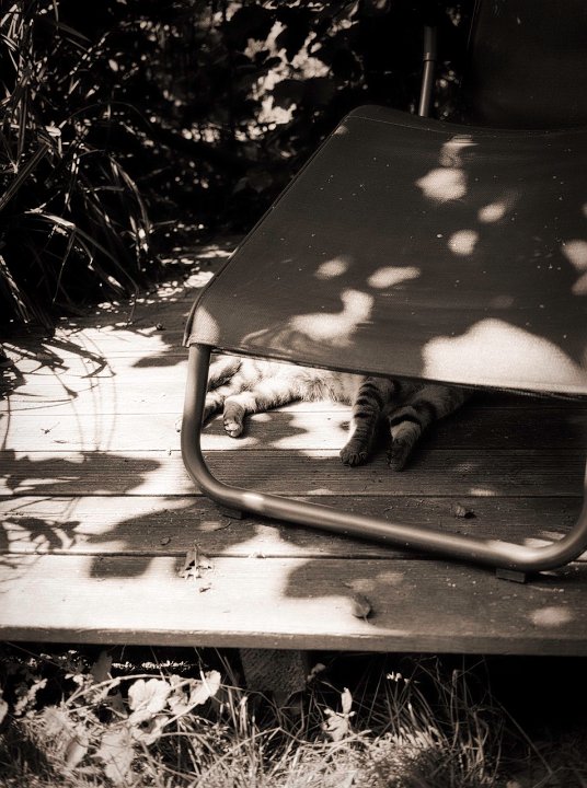 39 Vier Pfoten unterm Liegestuhl Fuji GS645S professional, Rollei RPX 100 |