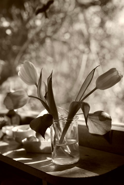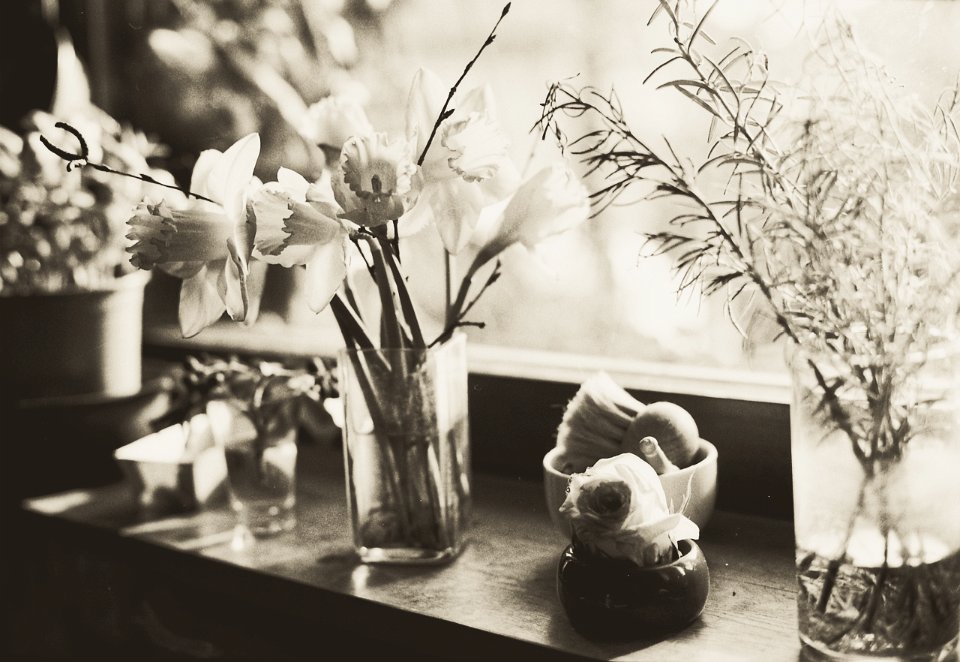 9 Die ersten Narzissen auf der Fensterbank Contax Aria, Planar 1.4/50, Ilford Delta 100@64 |
