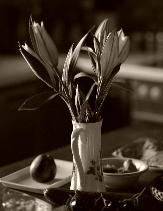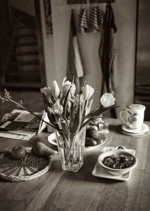 53 Küchenszene mit Blüten Pentax 67II, SMC 4.0/200, Foma Retropan 320 |