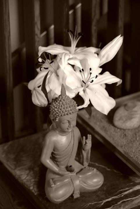 26 Lilien mit Buddhafigur Pentax K-1, HD Pentax - D FA* 2.8/70-200ED DC AW - 08.02.2020 - |