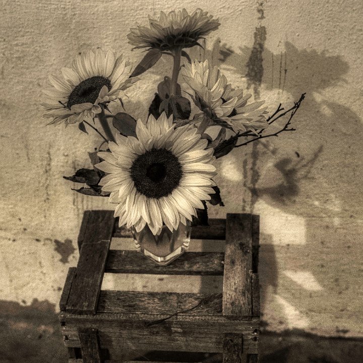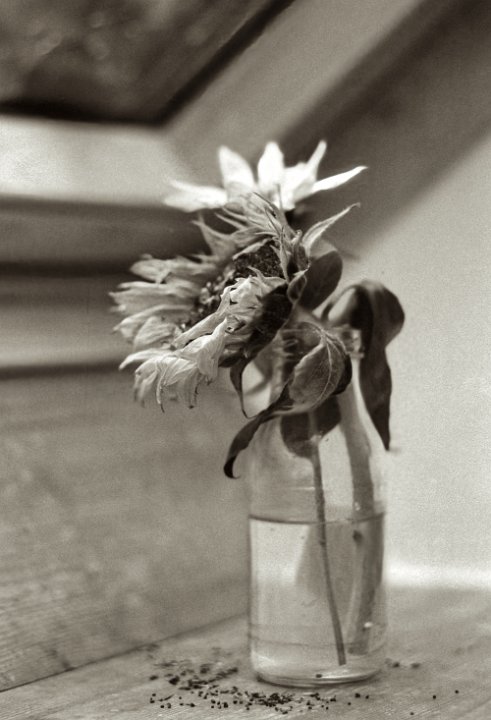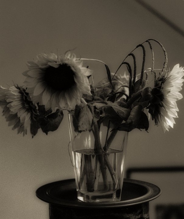 118 Stillleben mit Sonnenblumen Canham DLC 45, Apo Sironar-N 5.6/150, FOMA Retropan 320 soft - 19.07.2023 - |