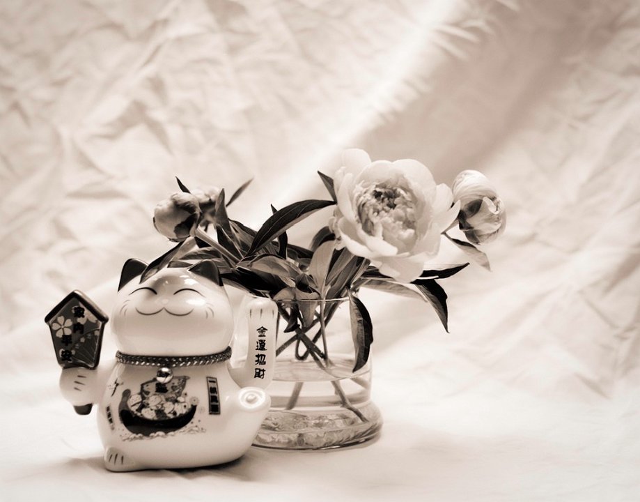 32 Maneki Neko und rosa Päonie Pentax 6x7, SMC Takumar 2.8/150, Fuji Acros 100@64 |