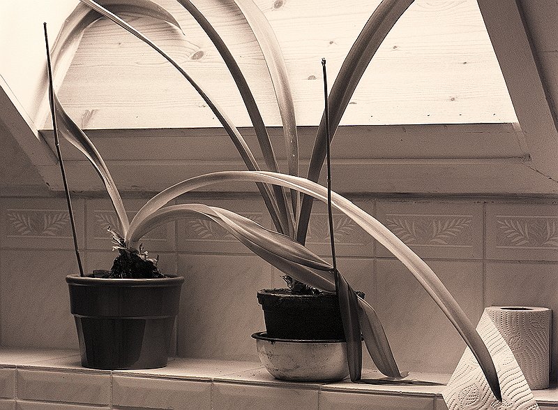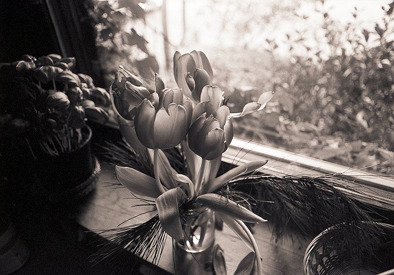 86 Tulpen am Küchenfenster Pentax LX, SMC 2.8/24; 400TX/400 Gelbfilter - 06.01.2013 - |