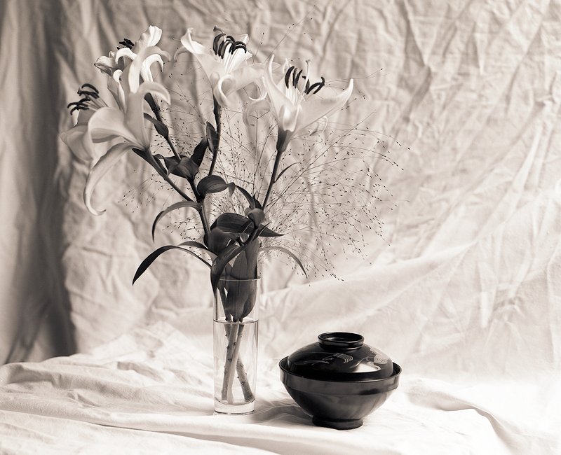 66 Lilien mit Lackschale Pentax 67II, 2.4/105, Efke R50/50 |