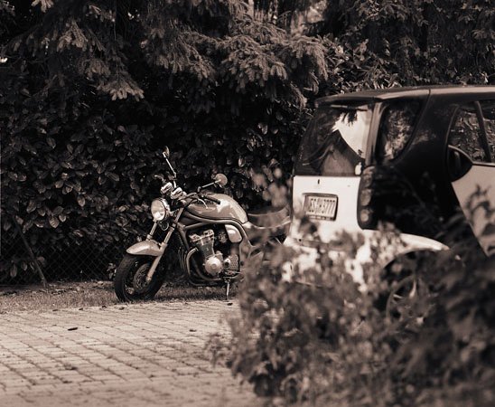76 Im Carport Pentax 67II, SMC 2.4/105, Bergger Pancro400@640 |