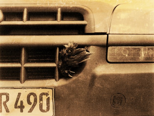 20 Amsel im Kühlergrill Pentax 6x7, 2.4/105; Fuji 400 - 2004 - |
