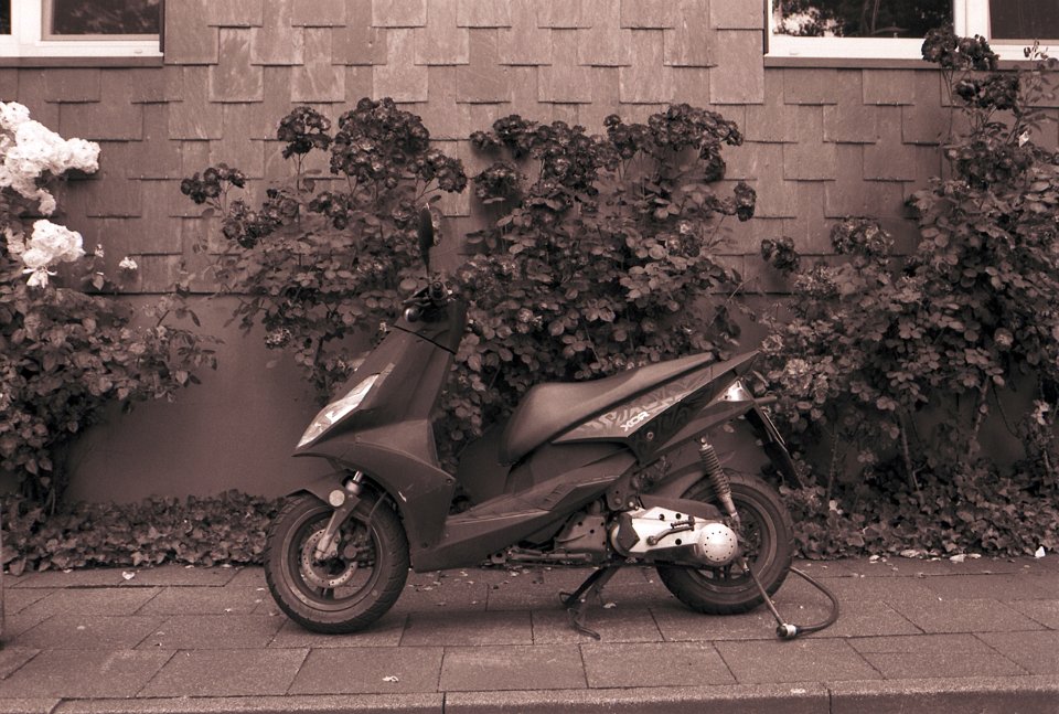 73 Motorroller und Rosen Pentax LX, SMC 2.0/35; Adox Silvermax 100@64 |