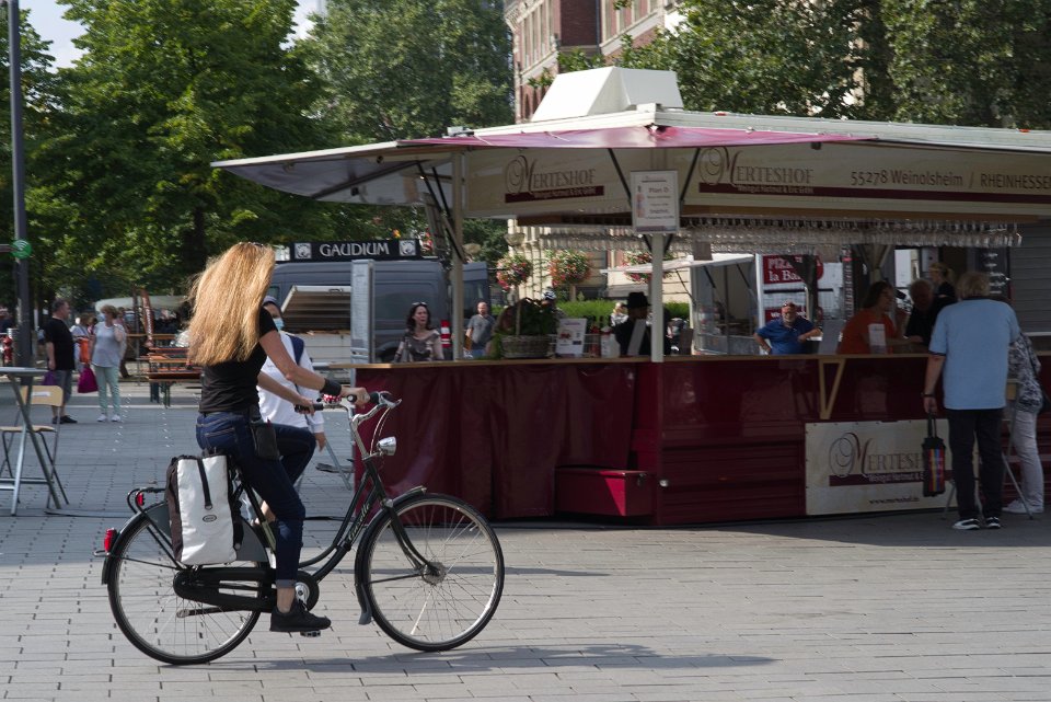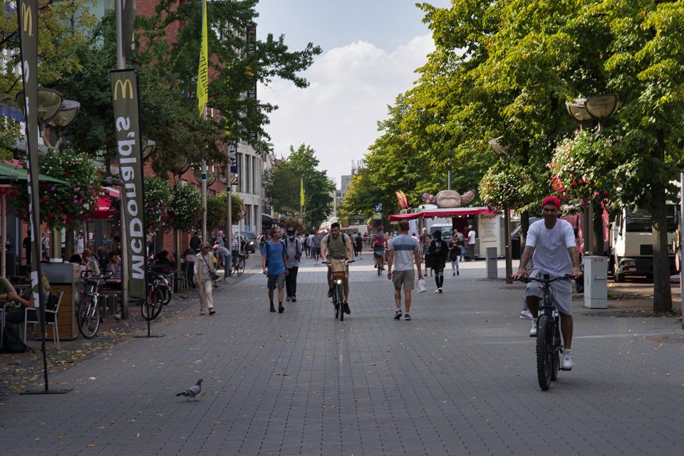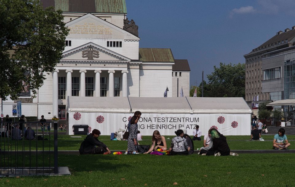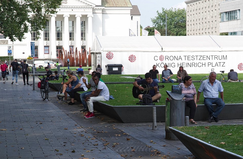 Ganz locker vor Stadttheater und Corona Testzentrum