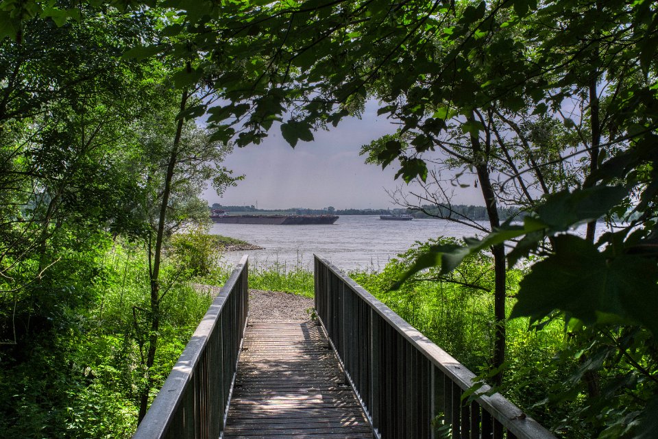 Kleine Rotbachbrücke mit Blick auf den Rhein