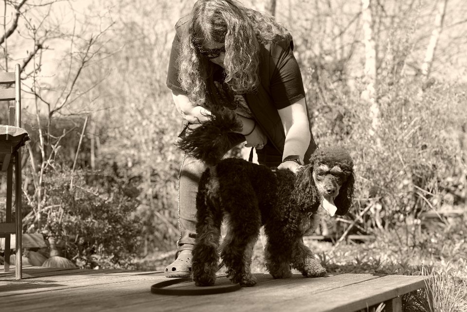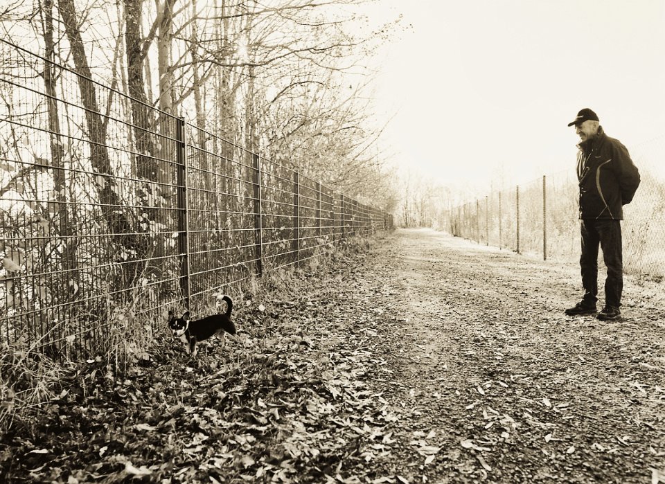 59 Frau mit Hund am frühen Morgen Pentax K 1, HD Pentax -DFA 2.8/24-70 ED SDM WR - 05.04.2018, 7:39 Uhr - |